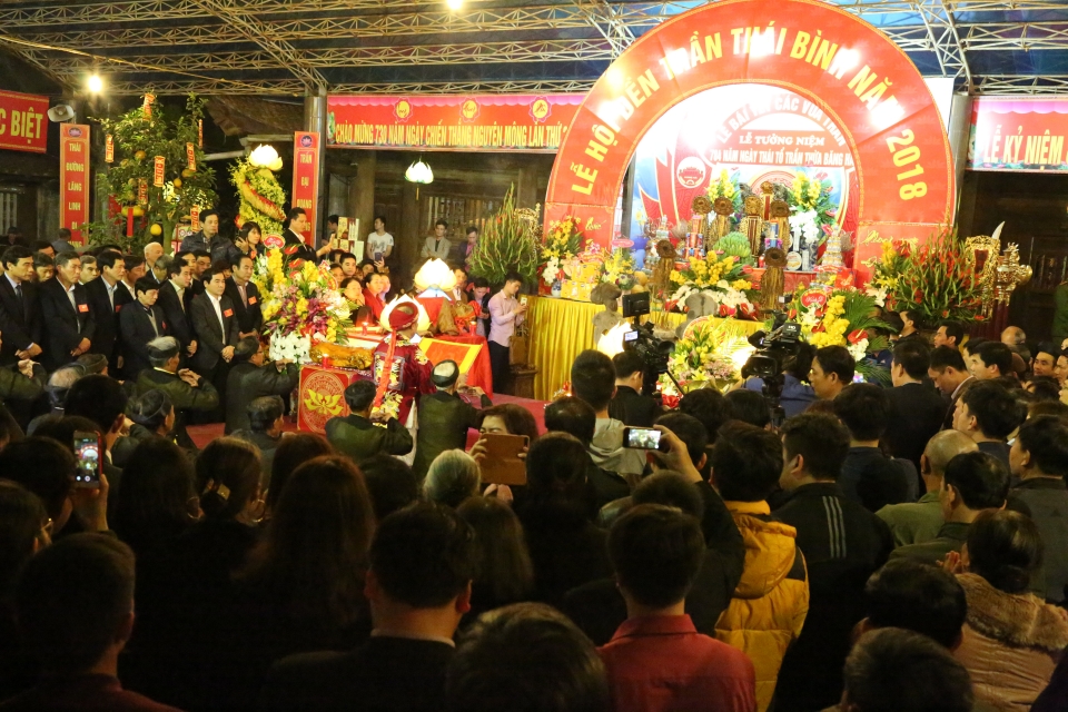 Các đồng chí lãnh đạo tỉnh dự lễ khai hội đền Trần Thái Bình năm 2018. Ảnh: Thành Tâm