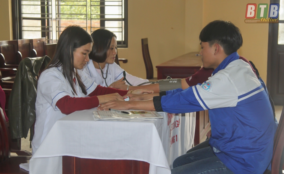 Thanh niên Hưng Hà tham gia khám tuyển nghĩa vụ quân sự.
