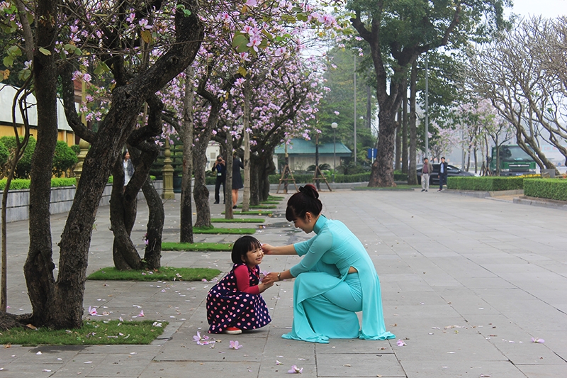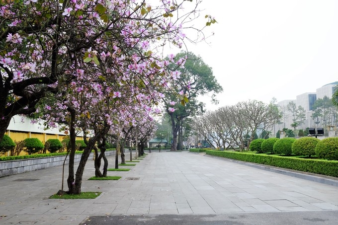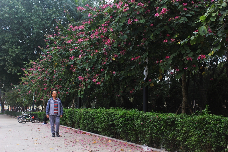 Hàng hoa ban tím nở rộ tại khu vực Công viên Lênin trên đường Điện Biên Phủ.