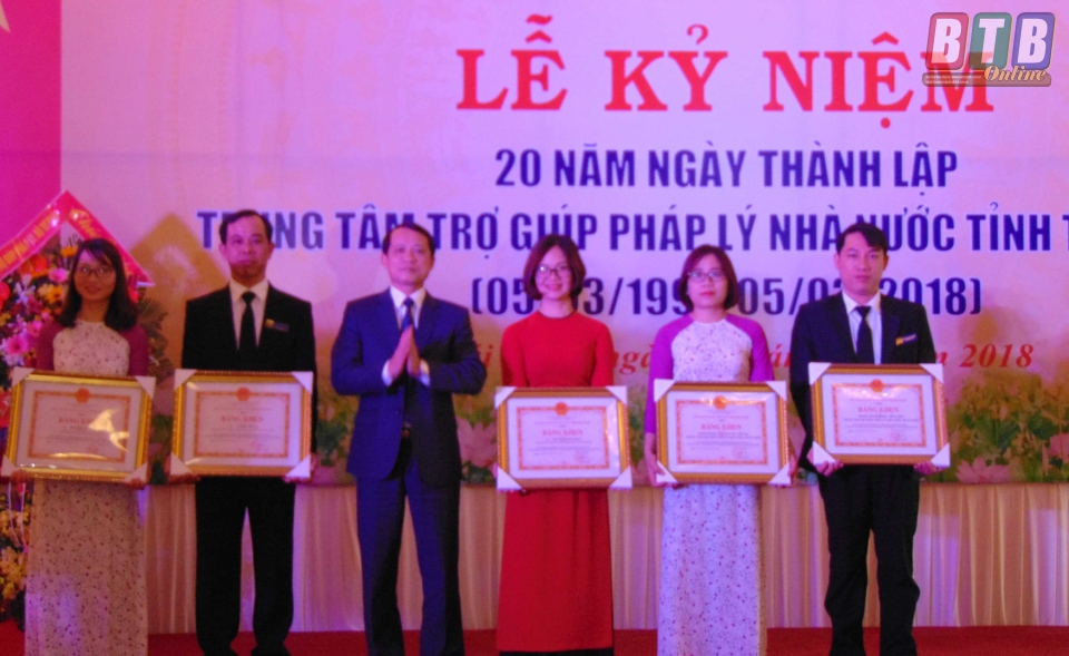 Nhân dịp này, Tỉnh ủy, HĐND, UBND tỉnh trao tặng Trung tâm bức trướng với 8 chữ: "Đoàn kết - Kỷ cương - Trách nhiệm - Hiệu quả”; có 5 tập thể và cá nhân được Chủ tịch UBND tỉnh tặng Bằng khen vì có thành tích xuất sắc trong thực hiện nhiệm vụ trợ giúp pháp lý thời gian qua.