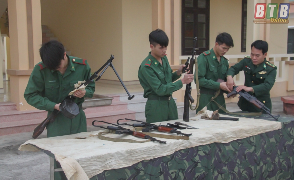 Chiến sĩ Đồn Biên phòng Trà Lý thực hành tháo lắp súng.