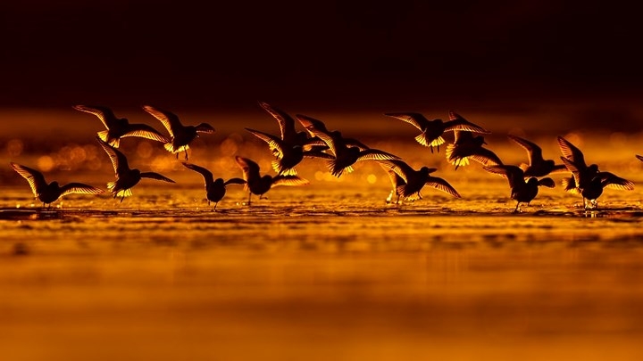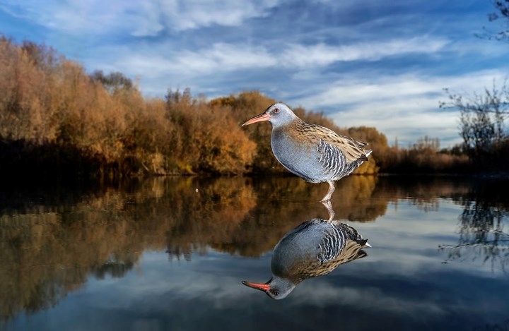 Một chú chim dò dẫm đi trên mặt nước tại Tây Ban Nha.