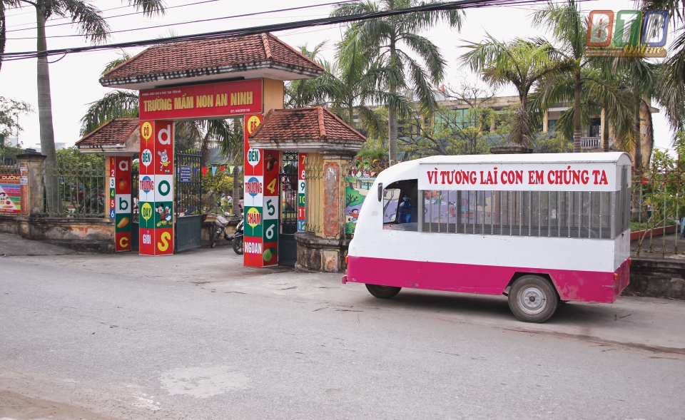 Xe tự chế dùng để đưa đón học sinh tại xã An Ninh (Tiền Hải).