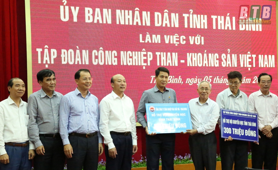 Về các kiến nghị của tỉnh, Tập đoàn TKV bày tỏ quan điểm đồng tình và cam kết với tỉnh về việc thành lập công ty cho đơn vị cung ứng, vận chuyển than cung cấp cho Trung tâm Điện lực Thái Bình; tiếp tục kiến nghị với Chính phủ hỗ trợ kinh phí để đầu tư nạo vét luồng cửa sông Trà Lý và nâng cấp cầu cảng Diêm Điền; chú trọng đầu tư bổ sung các thiết bị quan trắc hiện đại để kịp thời phát hiện và xử lý những sự cố về môi trường có thể xảy ra... Tập đoàn TKV cũng hứa sẽ tiếp tục nghiên cứu đầu tư về tỉnh trong thời gian tới về lĩnh vực điện lực, khoáng sản một cách sớm nhất.