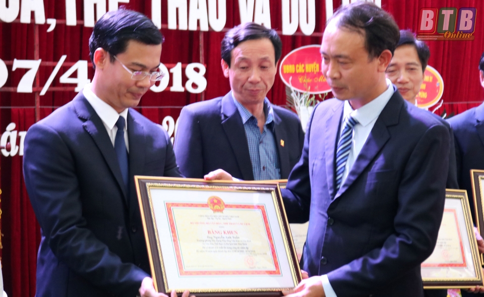 Đại diện Bộ Văn hóa, Thể thao và Du lịch trao bằng khen của Bộ cho các cá nhân có nhiều thành tích xuất sắc trong công tác văn hóa, thể thao và du lịch.