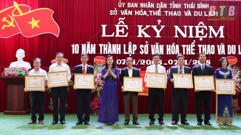 Tại lễ kỷ niệm, đồng chí Đặng Trọng Thăng, Phó Bí thư thường trực Tỉnh ủy, Chủ tịch HĐND tỉnh thừa ủy quyền của Thủ tướng Chính phủ đã trao cờ thi đua của Thủ tướng Chính phủ cho Sở Văn hóa, Thể thao và Du lịch vì có nhiều thành tích xuất sắc trong năm 2017; 1 tập thể, 16 cá nhân có nhiều thành tích xuất sắc trong 10 năm thành lập Sở Văn hóa, Thể thao và Du lịch được Bộ Văn hóa, Thể thao và Du lịch; UBND tỉnh tặng bằng khen.