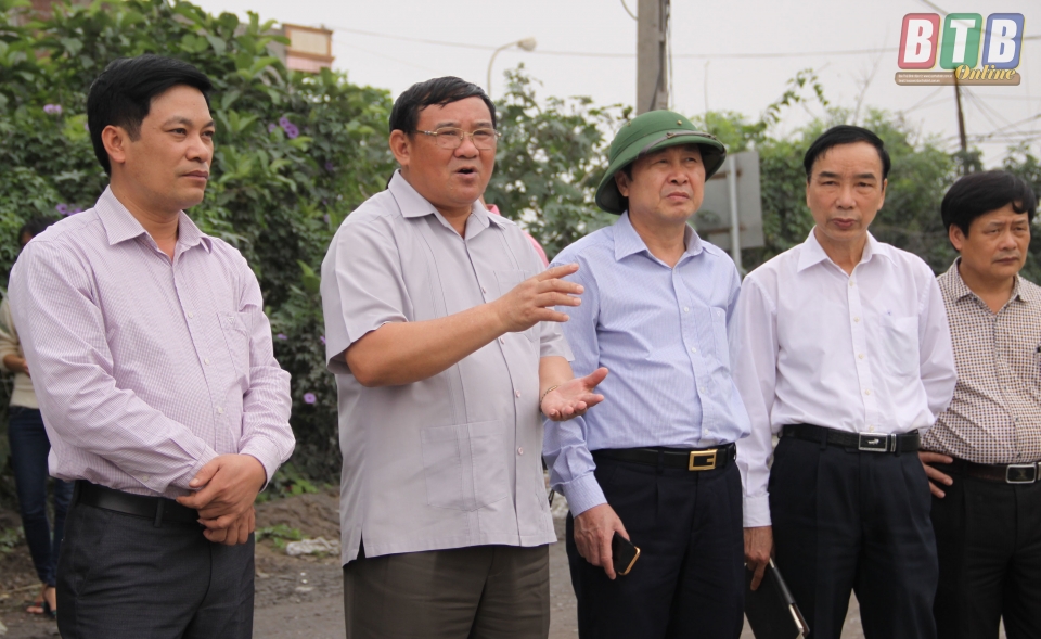 * Cũng trong sáng ngày 17/4, các đồng chí: Phạm Văn Xuyên, Tỉnh ủy viên, Phó Chủ tịch UBND tỉnh; Phạm Văn Tuân, Tỉnh ủy viên, Phó Trưởng đoàn chuyên trách Đoàn đại biểu Quốc hội tỉnh đến kiểm tra mặt bằng sau khi tháo dỡ lò vôi tại khu vực cầu Nghìn, thị trấn An Bài (Quỳnh Phụ