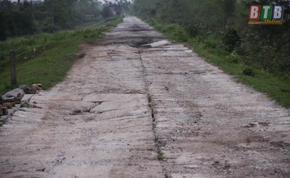 Mặt đê tả Trà Lý đoạn qua địa phận xã Đông Hòa, thành phố Thái Bình xuống cấp nghiêm trọng.