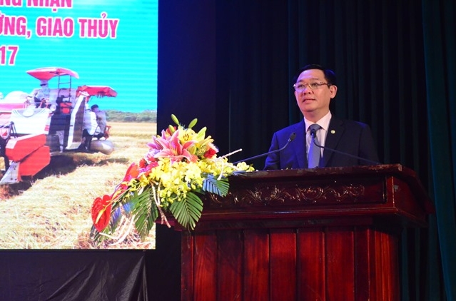 Phát biểu ý kiến tại buổi lễ, Phó Thủ tướng Vương Đình Huệ nhiệt liệt chúc mừng thành tích trong phong trào xây dựng NTM của Nam Định, đồng thời nhấn mạnh “Hiếm có tỉnh nào vinh danh một lúc đến bốn huyện đạt chuẩn NTM”.