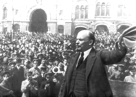 Lãnh tụ Đảng Bolshevich V.I.Lênin tuyên bố thành lập chính quyền Xô Viết tại Đại hội Xô Viết toàn Nga ngày 7/11/1917 tại điện Smolnya, ngay sau khi chiếm cung điện mùa đông. Ảnh tư liệu