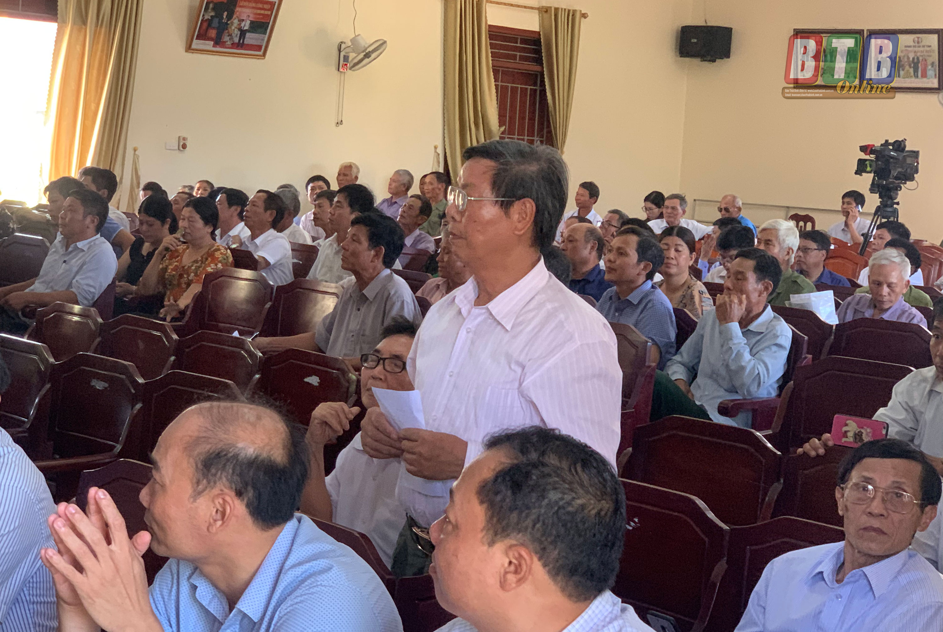 Cử tri huyện Vũ Thư phát biểu ý kiến tại buổi tiếp xúc. Ảnh: Nguyễn Tùng