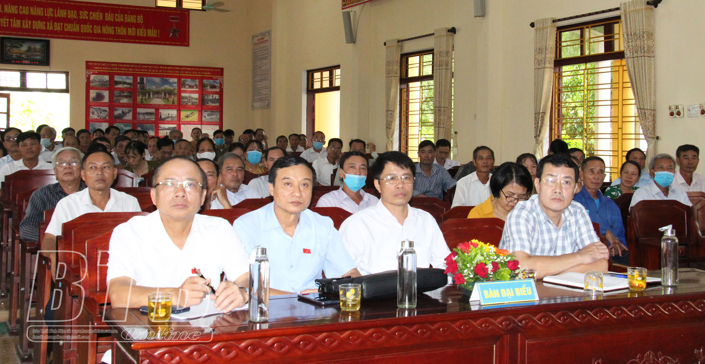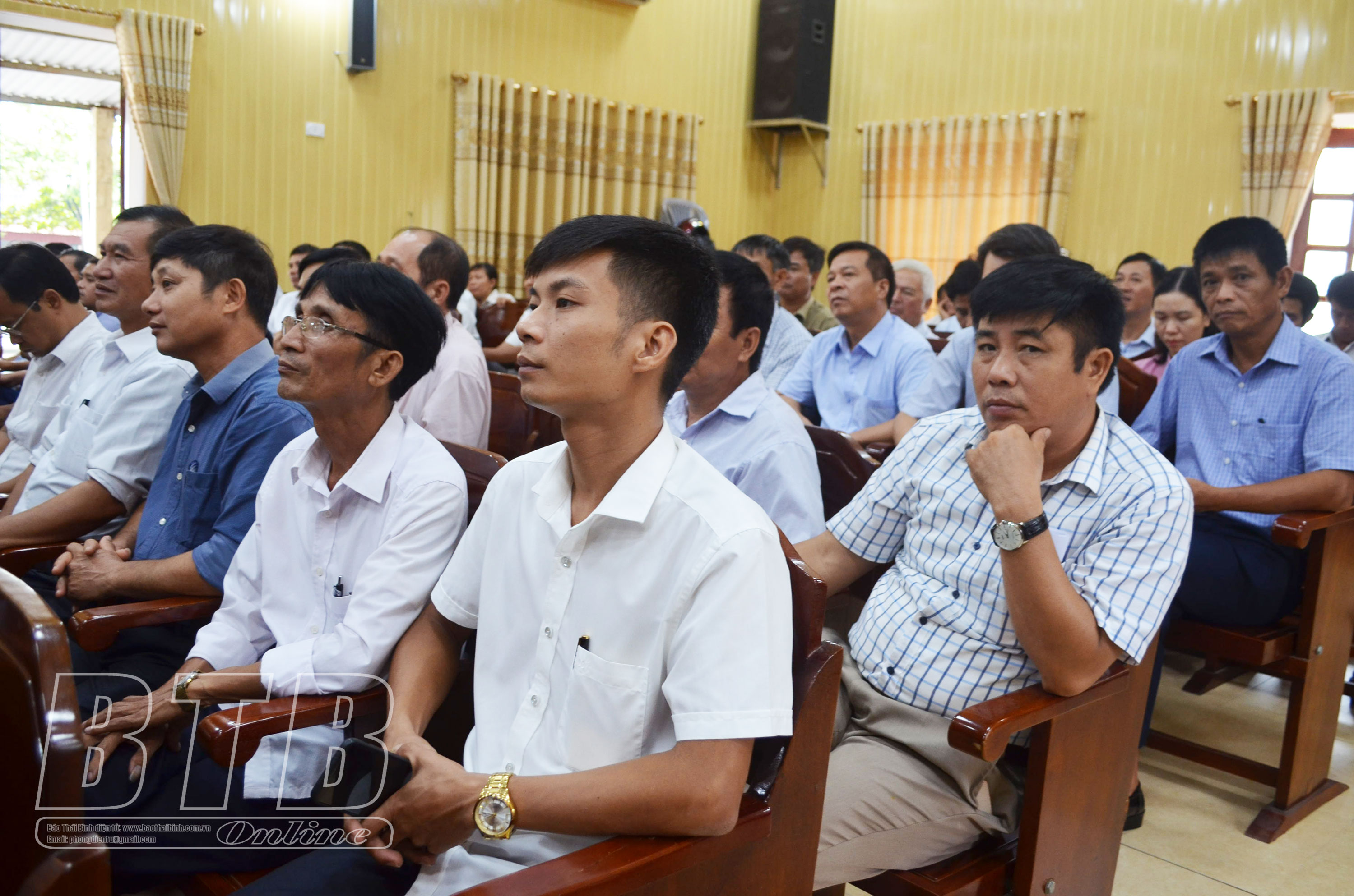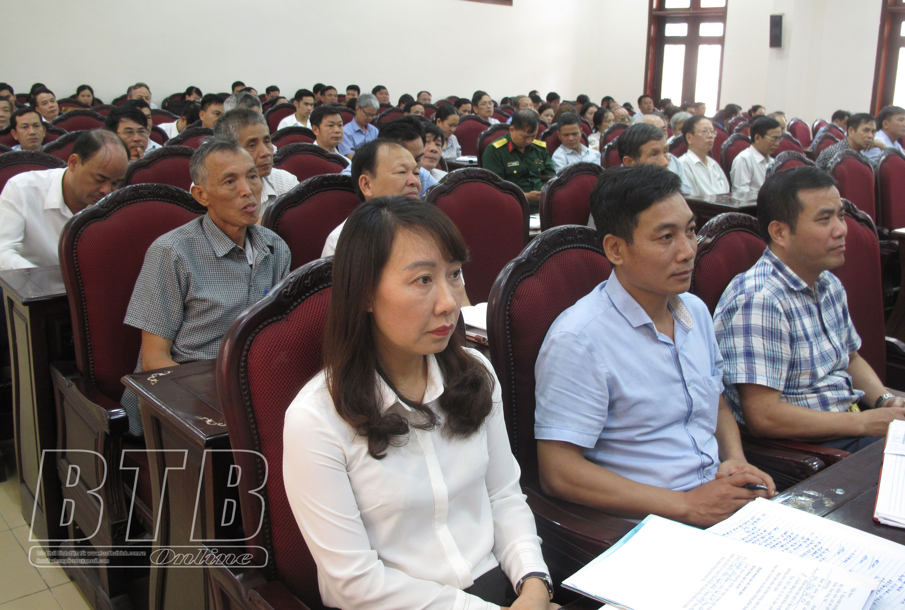 Các đại biểu Quốc hội tỉnh dự hội nghị tiếp xúc với cử tri huyện Thái Thụy. Ảnh: Thu Hiền