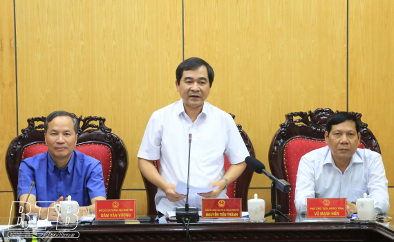 Đồng chí Nguyễn Tiến Thành, Phó Bí thư thường trực Tỉnh ủy, Chủ tịch HĐND tỉnh phát biểu tại cuộc họp. Ảnh: Thành Tâm