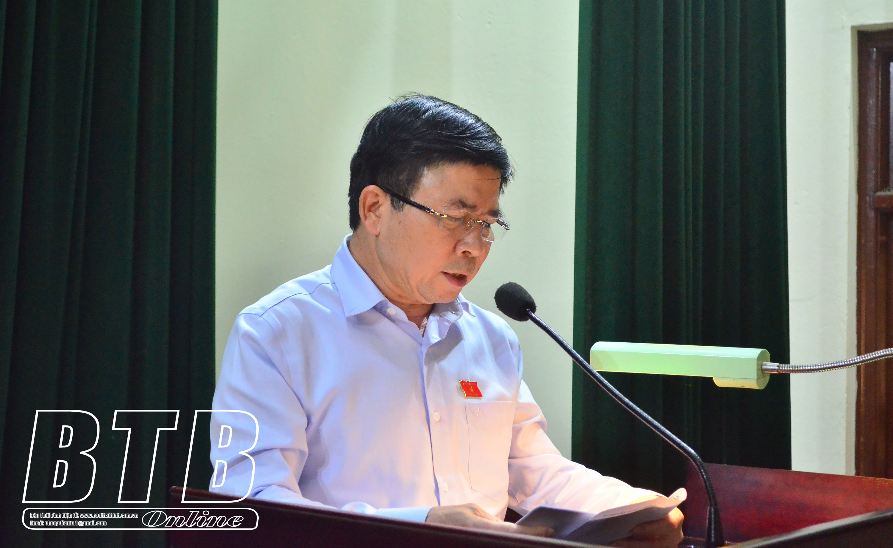 Đồng chí Phạm Văn Tuân, Ủy viên Ban Thường vụ, Trưởng đoàn đại biểu Quốc hội tỉnh, Trưởng ban Tổ chức Tỉnh uỷ tiếp thu các ý kiến của các đại biểu cử tri huyện Tiền Hải. Ảnh: Phương Chi