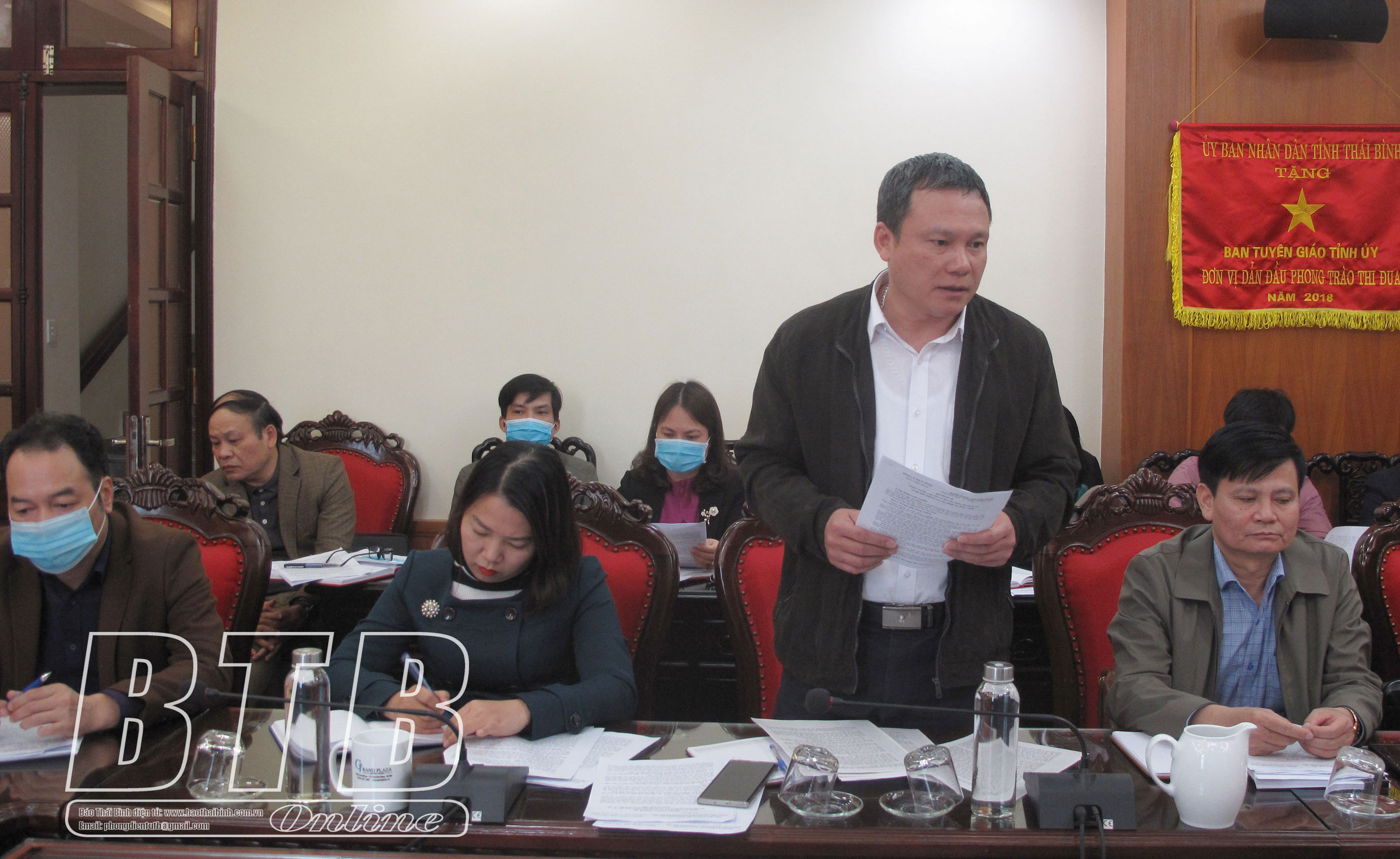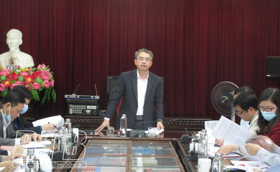 Lãnh đạo Báo Thái Bình phát biểu tại cuộc họp.