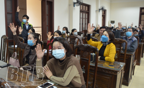 Cử tri thuộc các công đoàn chuyên trách biểu quyết đối với nhân sự ứng cử đại biểu HĐND tỉnh, nhiệm kỳ 2021-2026.