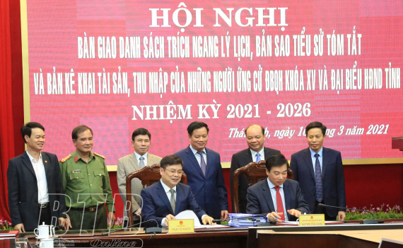 Tại hội nghị, đại diện Ủy ban bầu cử tỉnh và Ban Thường trực Ủy ban MTTQ tỉnh đã ký biên bản bàn giao, tiếp nhận hồ sơ những người ứng cử đại biểu Quốc hội khóa XV và đại biểu HĐND tỉnh nhiệm kỳ 2021 - 2026.