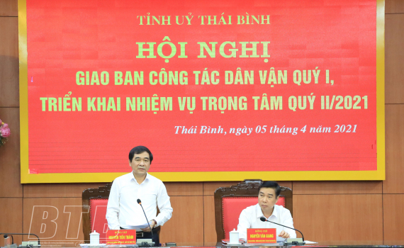 Phát biểu tại hội nghị, đồng chí Nguyễn Tiến Thành, Phó Bí thư thường trực Tỉnh ủy, Chủ tịch HĐND tỉnh ghi nhận và biểu dương những kết quả hệ thống dân vận các cấp trong tỉnh đã đạt được trong thời gian qua. Đồng chí nhấn mạnh, trong quý II/2021 phải tổ chức thành công cuộc bầu cử đại biểu Quốc hội khóa XV và đại biểu HĐND các cấp nhiệm kỳ 2021 - 2026, vì vậy hệ thống dân vận các cấp phải thường xuyên nắm chắc tình hình, tư tưởng các tầng lớp nhân dân, nhất là những nơi tiềm ẩn phức tạp; kịp thời tham mưu cấp ủy, chính quyền giải quyết, bảo đảm ổn định tình hình an ninh trật tự ở cơ sở. Đặc biệt, nắm tình hình, tư tưởng, nguyện vọng của nhân dân đối với cuộc bầu cử đại biểu Quốc hội khóa XV và đại biểu HĐND các cấp nhiệm kỳ 2021 - 2026, tình hình đại biểu, cử tri; vận động nhân dân tự giác, tham gia bầu cử đúng luật. Đồng thời, tổ chức tốt việc tuyên truyền, quán triệt, triển khai thực hiện Nghị quyết Đại hội XIII của Đảng, Nghị quyết Đại hội đại biểu Đảng bộ tỉnh lần thứ XX, nhiệm kỳ 2020 - 2025. Nâng cao chất lượng, hiệu quả công tác dân vận; tiếp tục đẩy mạnh phong trào thi đua “Dân vận khéo”, triển khai xây dựng các mô hình bảo đảm hiệu quả, thiết thực hơn, thi đua lập thành tích chào mừng cuộc bầu cử đại biểu Quốc hội khóa XV và đại biểu HĐND các cấp nhiệm kỳ 2021 - 2026. Đồng chí Phó Bí thư thường trực Tỉnh ủy, Chủ tịch HĐND tỉnh đề nghị MTTQ và các đoàn thể chính trị - xã hội xây dựng kế hoạch và tổ chức triển khai các nội dung chương trình giám sát, phản biện xã hội; tiếp tục củng cố tổ chức, đổi mới nội dung, hình thức hoạt động bảo đảm thiết thực, hiệu quả. Nâng cao hiệu quả hoạt động của ban chỉ đạo thực hiện quy chế dân chủ ở cơ sở và ban chỉ đạo công tác tín ngưỡng, tôn giáo và công tác nhân quyền các cấp.