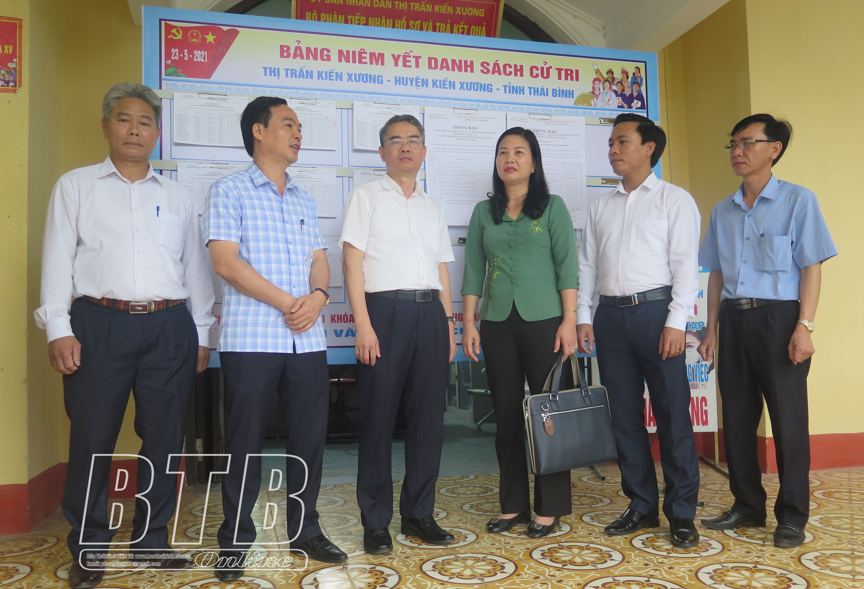 Đồng chí Phạm Đồng Thụy, Ủy viên Ban Thường vụ, Trưởng ban Tuyên giáo Tỉnh ủy, Ủy viên Ủy ban bầu cử tỉnh cùng các thành viên trong đoàn kiểm tra thực tế công tác chuẩn bị bầu cử tại thị trấn Kiến Xương.