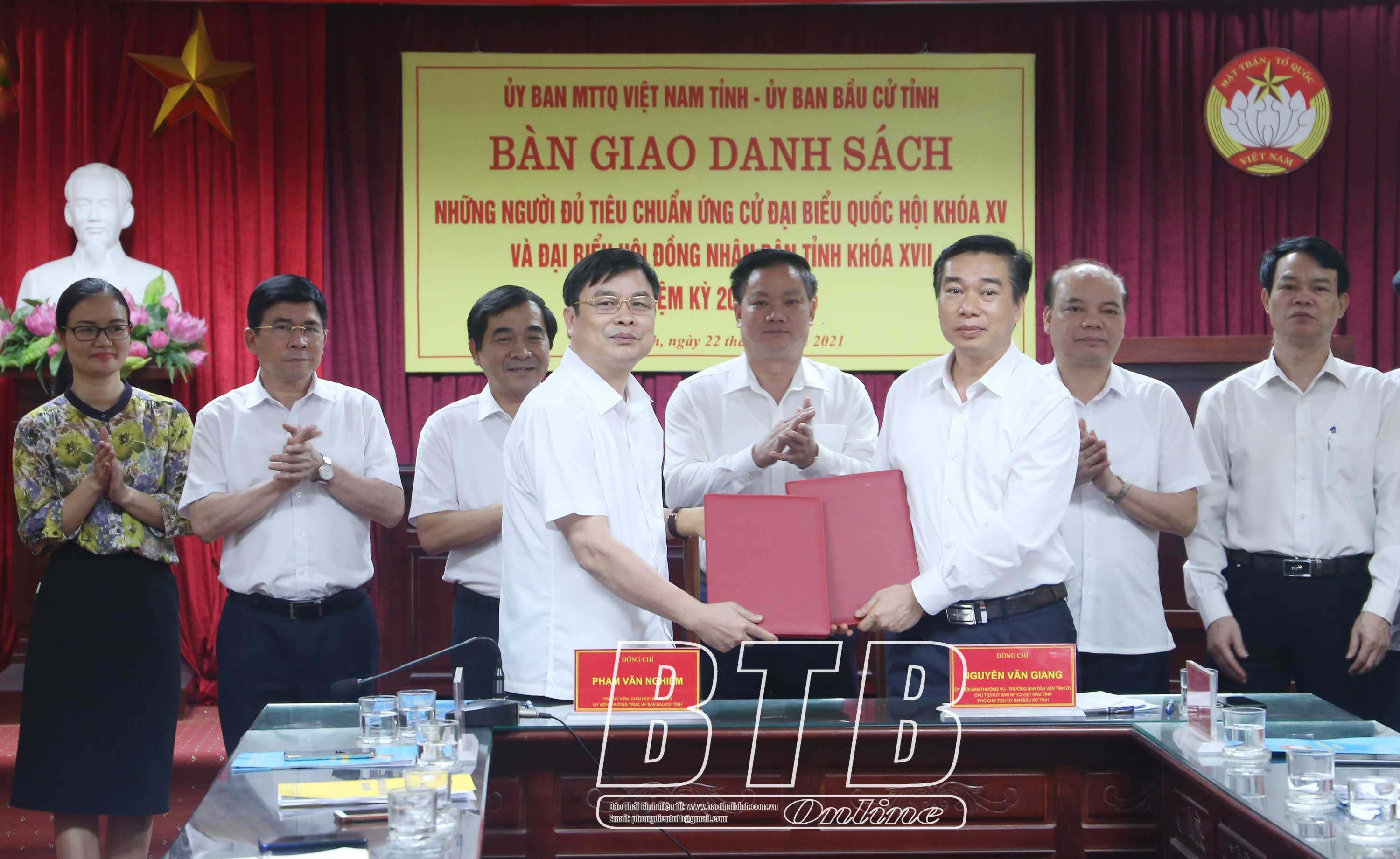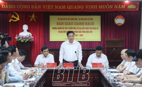 Tại hội nghị, Ban Thường trực Ủy ban MTTQ tỉnh đã ký biên bản và bàn giao danh sách chính thức 11 người đủ tiêu chuẩn ứng cử đại biểu Quốc hội khóa XV và 107 người đủ tiêu chuẩn ứng cử đại biểu HĐND tỉnh khóa XVII nhiệm kỳ 2021 - 2026 cho Ủy ban bầu cử tỉnh.