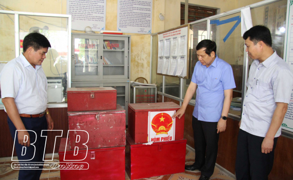 Đồng chí Vũ Mạnh Hiền, Phó Chủ tịch HĐND tỉnh kiểm tra công tác chuẩn bị cơ sở vật chất phục vụ bầu cử tại xã An Ninh.