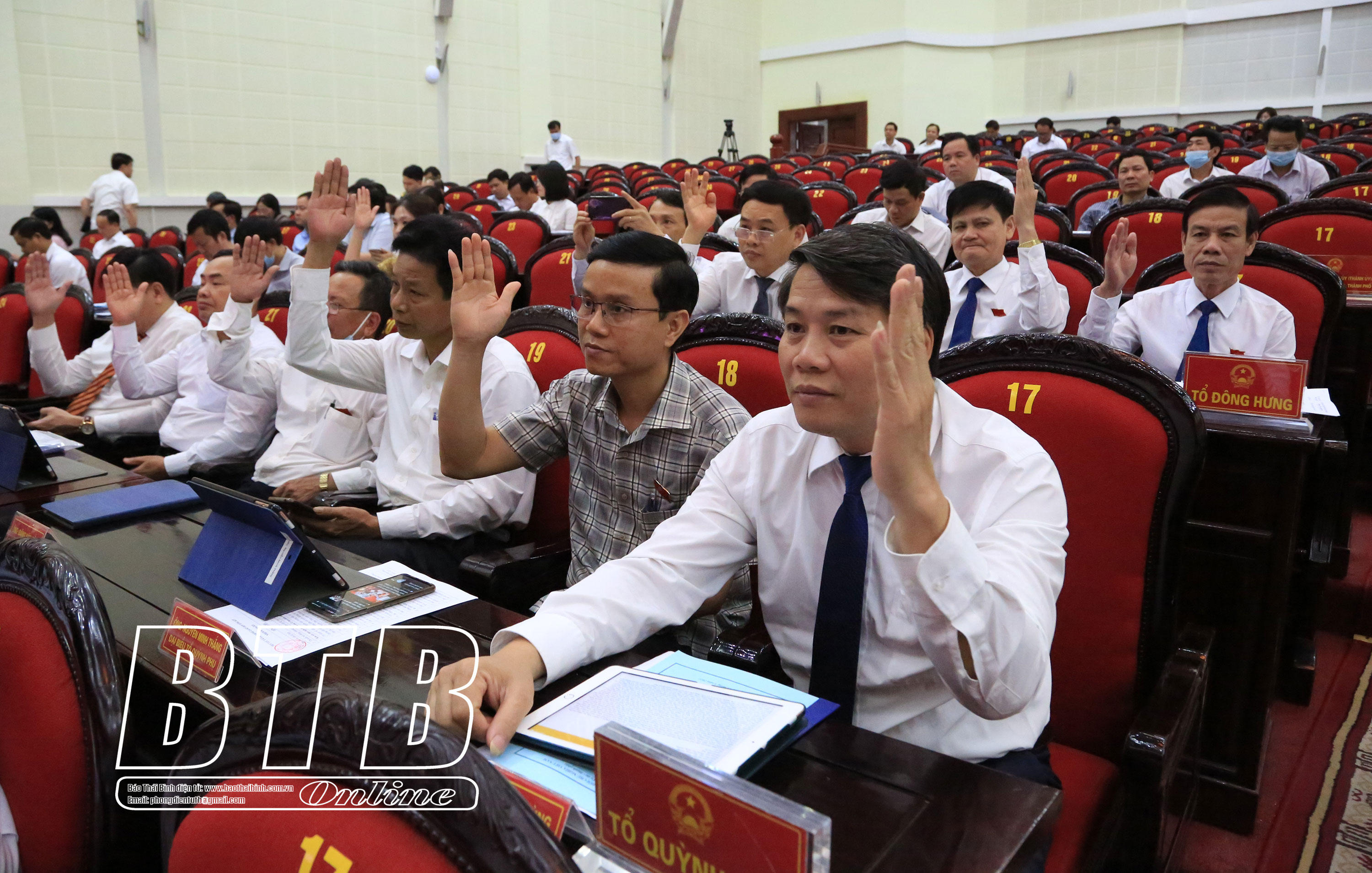 Đại biểu biểu quyết các nghị quyết tại kỳ họp.