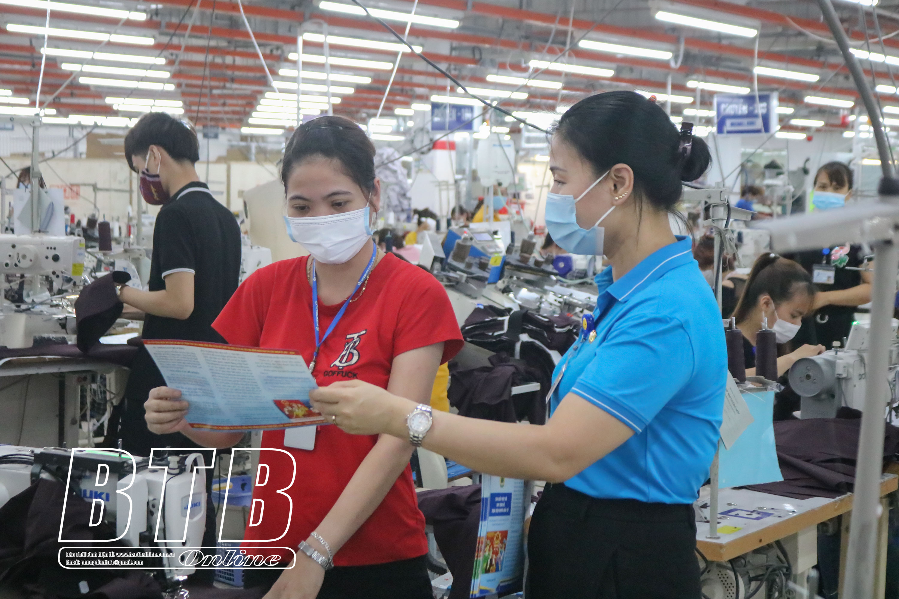 Tuyên truyền bầu cử cho công nhân lao động tại khu công nghiệp Nguyễn Đức Cảnh (thành phố Thái Bình).