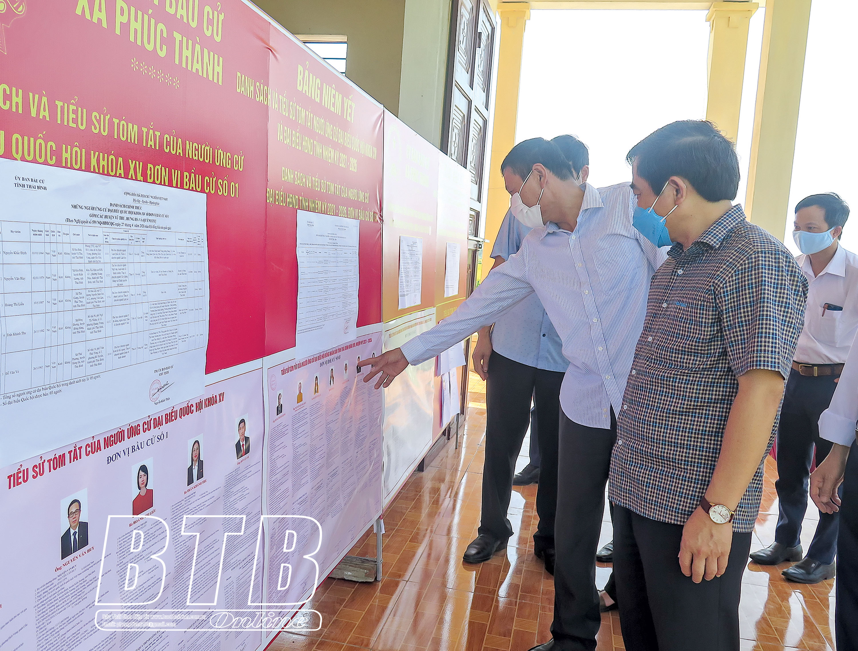 Đồng chí Nguyễn Tiến Thành, Phó Bí thư thường trực Tỉnh ủy, Chủ tịch HĐND tỉnh kiểm tra việc niêm yết danh sách và tiểu sử những người ứng cử đại biểu Quốc hội và đại biểu HĐND các cấp tại xã Phúc Thành (Vũ Thư).