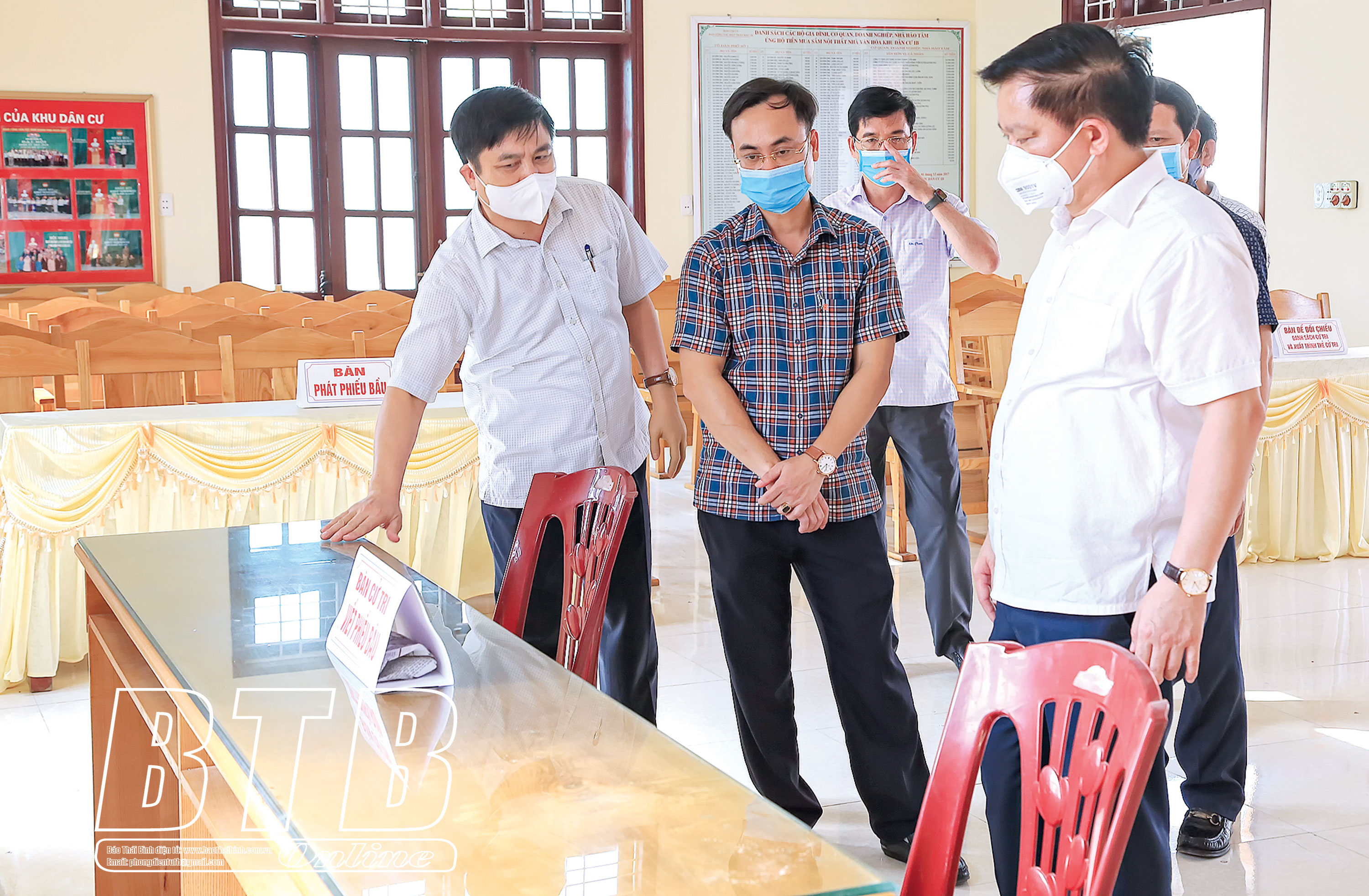 Đồng chí Nguyễn Khắc Thận, Phó Bí thư Tỉnh ủy, Chủ tịch UBND tỉnh, Chủ tịch Ủy ban bầu cử tỉnh kiểm tra công tác chuẩn bị bầu cử tại khu vực bỏ phiếu số 1, thị trấn Quỳnh Côi (Quỳnh Phụ).