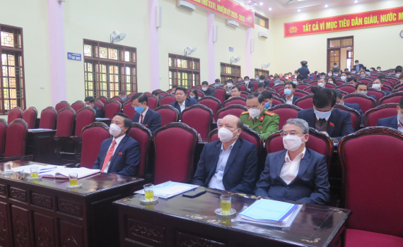 Các đồng chí lãnh đạo tỉnh, huyện dự kỳ họp.