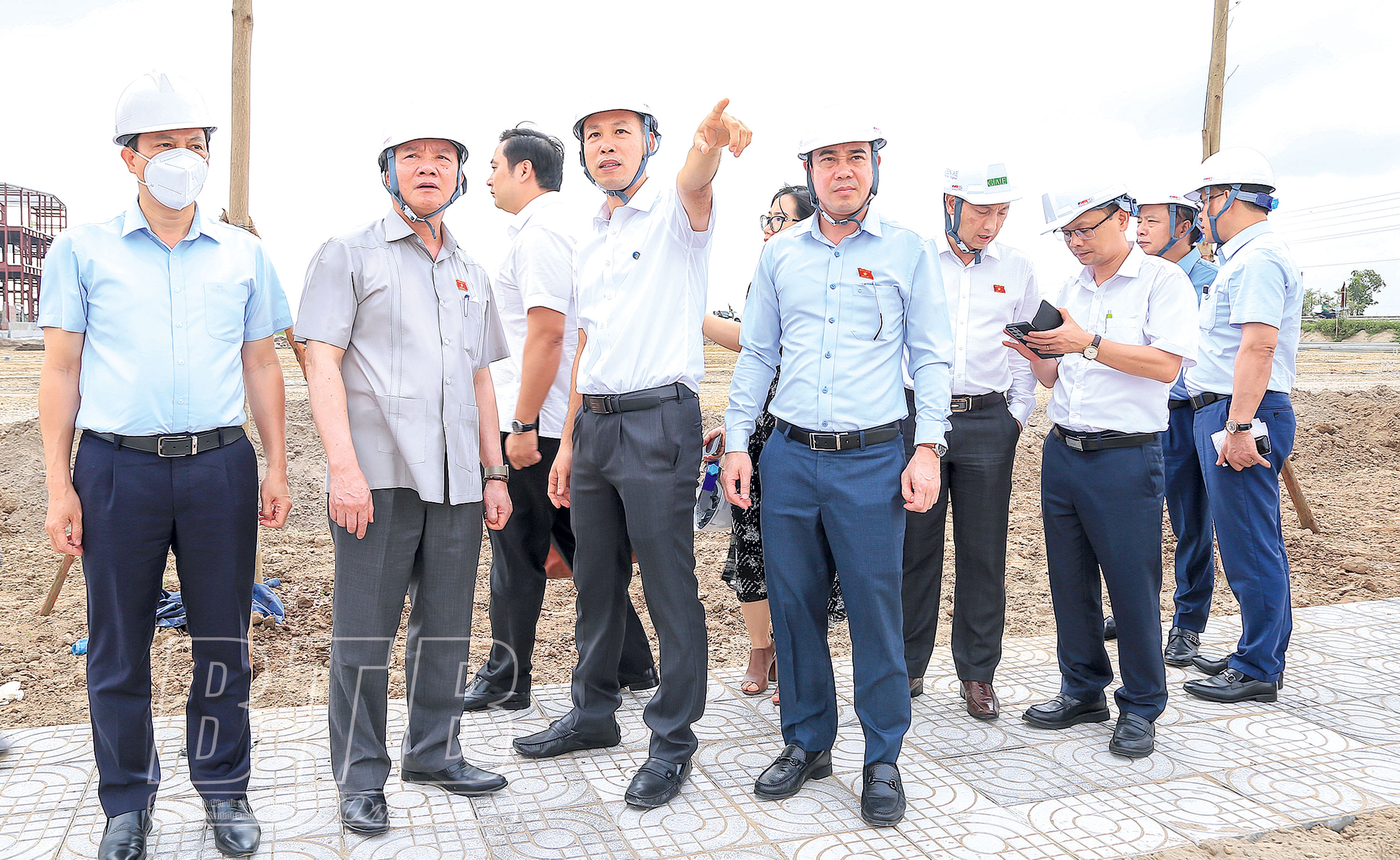 Đoàn đại biểu Quốc hội tỉnh khảo sát tiến độ triển khai xây dựng khu công nghiệp Liên Hà Thái. Ảnh: Thành Tâm