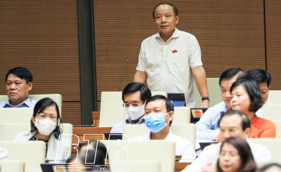 Đại biểu Nguyễn Văn Thân, Đoàn đại biểu Quốc hội tỉnh Thái Bình tham gia tranh luận tại phiên họp.