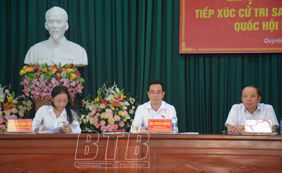 Các đại biểu Quốc hội tỉnh tiếp xúc với cử tri huyện Quỳnh Phụ. Ảnh: Phương Chi