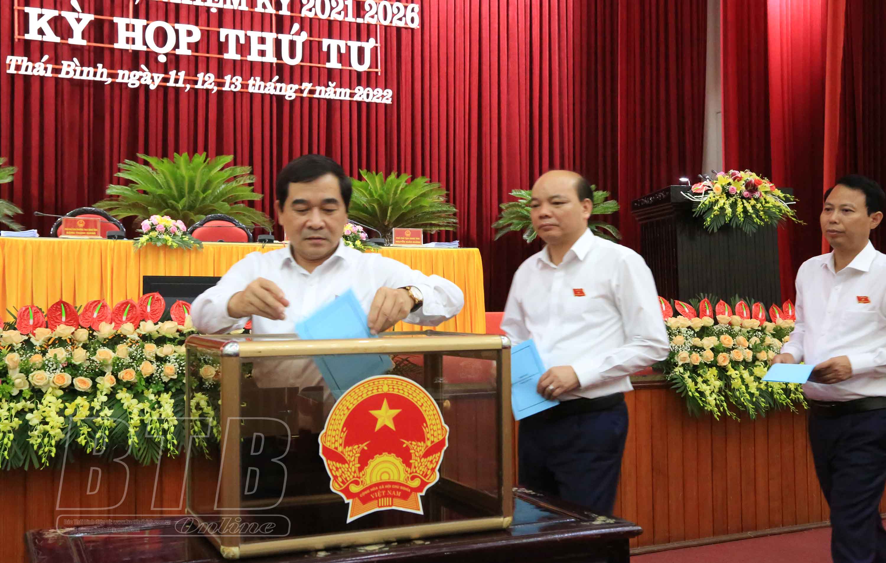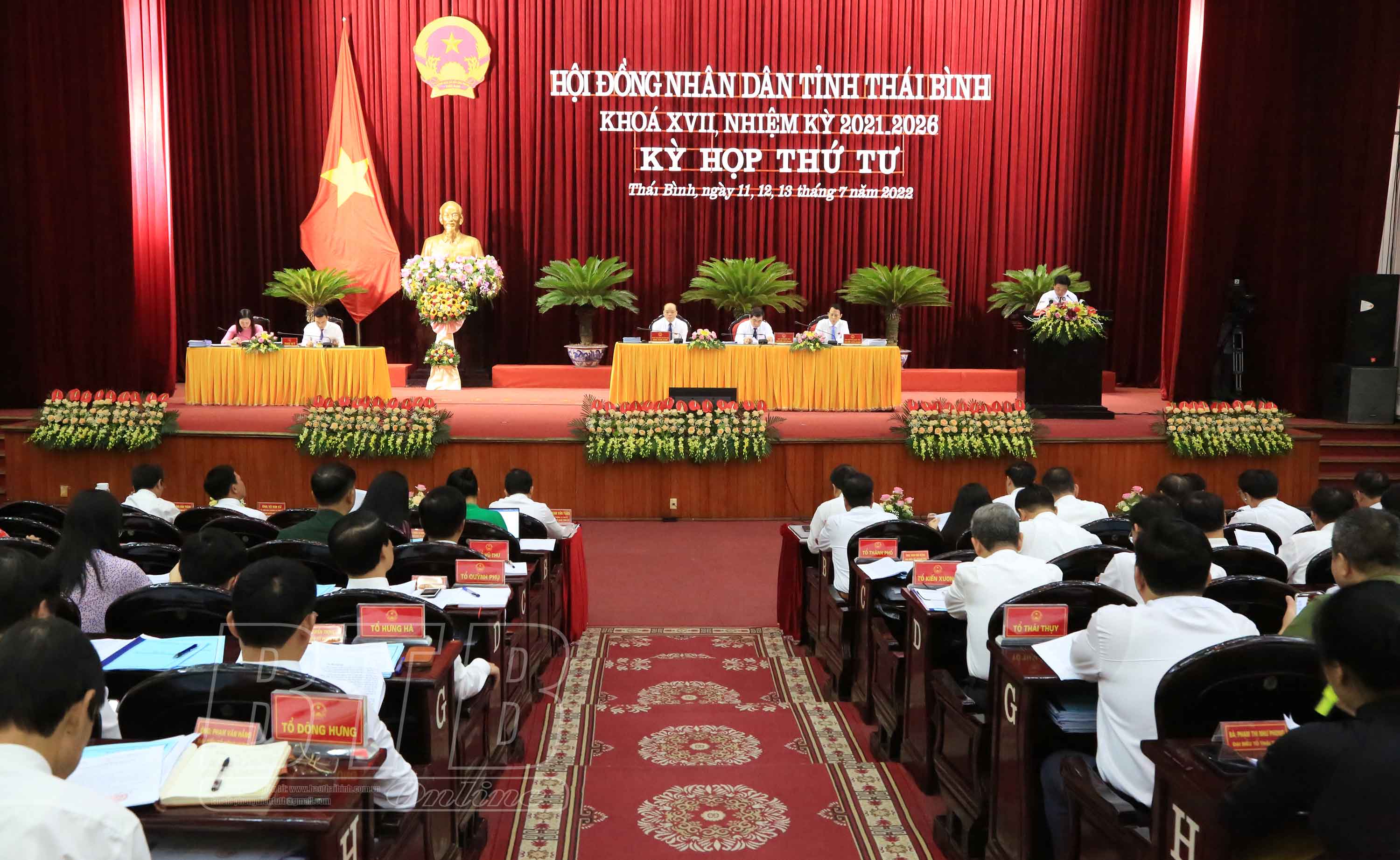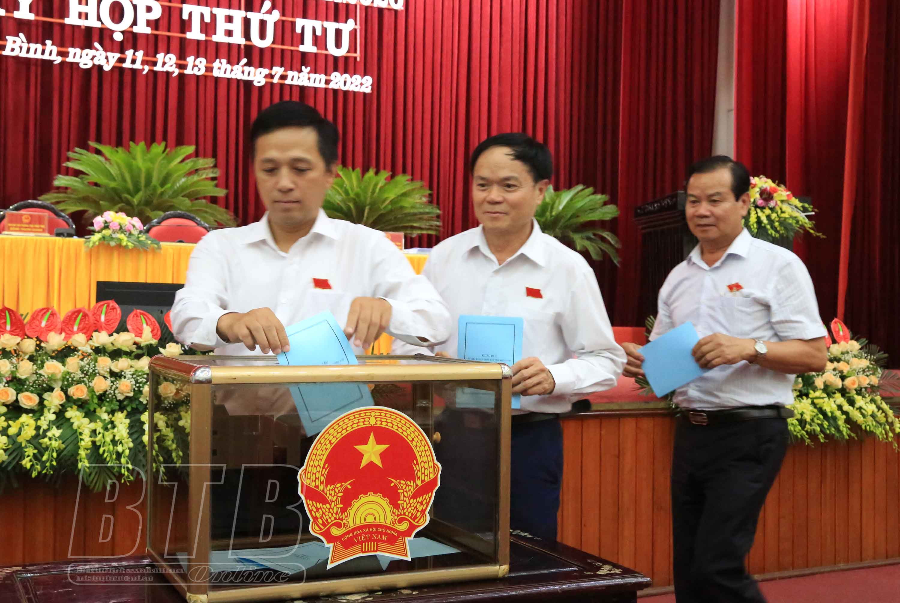 Cũng trong phiên họp buổi sáng, HĐND tỉnh đã nghe các báo cáo về: tổng hợp kết quả giải quyết ý kiến, kiến nghị của cử tri trước, sau kỳ họp thứ ba HĐND tỉnh khoá XVII; tình hình thực hiện kế hoạch đầu tư công và Chương trình mục tiêu quốc gia 6 tháng đầu năm; phương hướng, nhiệm vụ 6 tháng cuối năm 2022; tình hình thực hiện thu, chi ngân sách nhà nước 6 tháng đầu năm và dự kiến thực hiện thu, chi ngân sách năm 2022. UBND tỉnh báo cáo HĐND tỉnh các tờ trình về: kéo dài thời gian thực hiện và giải ngân kế hoạch đầu tư công nguồn ngân sách địa phương năm 2021 sang năm 2022; phê duyệt phương án phân bổ chi tiết kế hoạch vốn từ nguồn sửa chữa lớn tại Nghị quyết số 62/NQ-HĐND ngày 11/10/2021 của HĐND tỉnh; phê duyệt chủ trương đầu tư dự án cải tạo, nâng cấp kè bãi lở xã An Khê, huyện Quỳnh Phụ; phê duyệt chủ trương đầu tư dự án nạo vét, kè bờ kênh Bồng Tiên, huyện Vũ Thư; phê duyệt chủ trương đầu tư dự án đầu tư xây dựng công trình đường vào phục vụ dự án và giải phóng mặt bằng khu đất để thực hiện dự án nhà máy xử lý rác thải công nghệ cao tại xã Đông Á, huyện Đông Hưng; phê duyệt chủ trương đầu tư dự án đầu tư xây dựng nhà học và phục vụ học tập, các hạng mục phụ trợ Trường THPT Nguyễn Trãi; phê duyệt chủ trương đầu tư dự án đầu tư xây dựng nhà học và phục vụ học tập, các hạng mục phụ trợ Trường THPT Bắc Duyên Hà; ban hành Nghị quyết sửa đổi, bổ sung một số nội dung tại phụ lục ban hành kèm theo Nghị quyết số 50/2016/NQ-HĐND ngày 13/12/2016 của HĐND tỉnh quy định mức thu, chế độ thu, nộp, quản lý, sử dụng phí, lệ phí thuộc thẩm quyền của HĐND tỉnh trên địa bàn tỉnh Thái Bình và mục 2, Khoản 1, Điều 1, Nghị quyết số 09/2021/NQ-HĐND ngày 14/5/2021 của HĐND tỉnh quy định mức thu lệ phí đối với các tổ chức, cá nhân thực hiện thủ tục hành chính qua dịch vụ công trực tuyến mức độ 3, mức độ 4 trên địa bàn tỉnh Thái Bình.