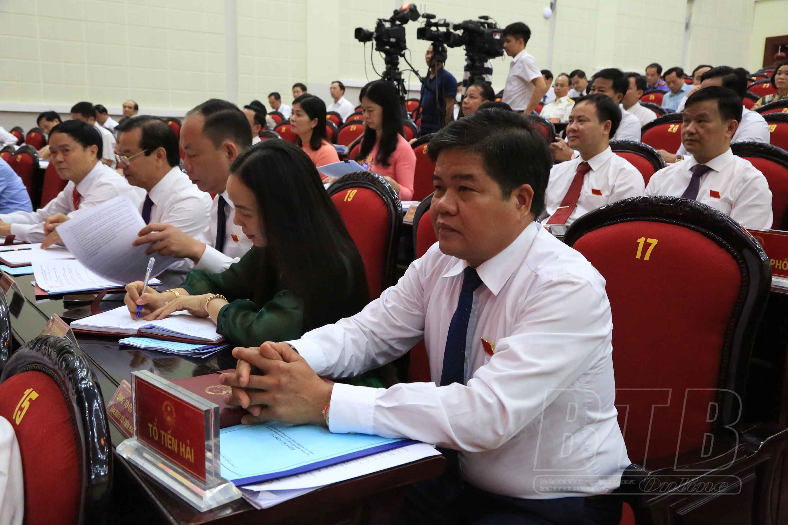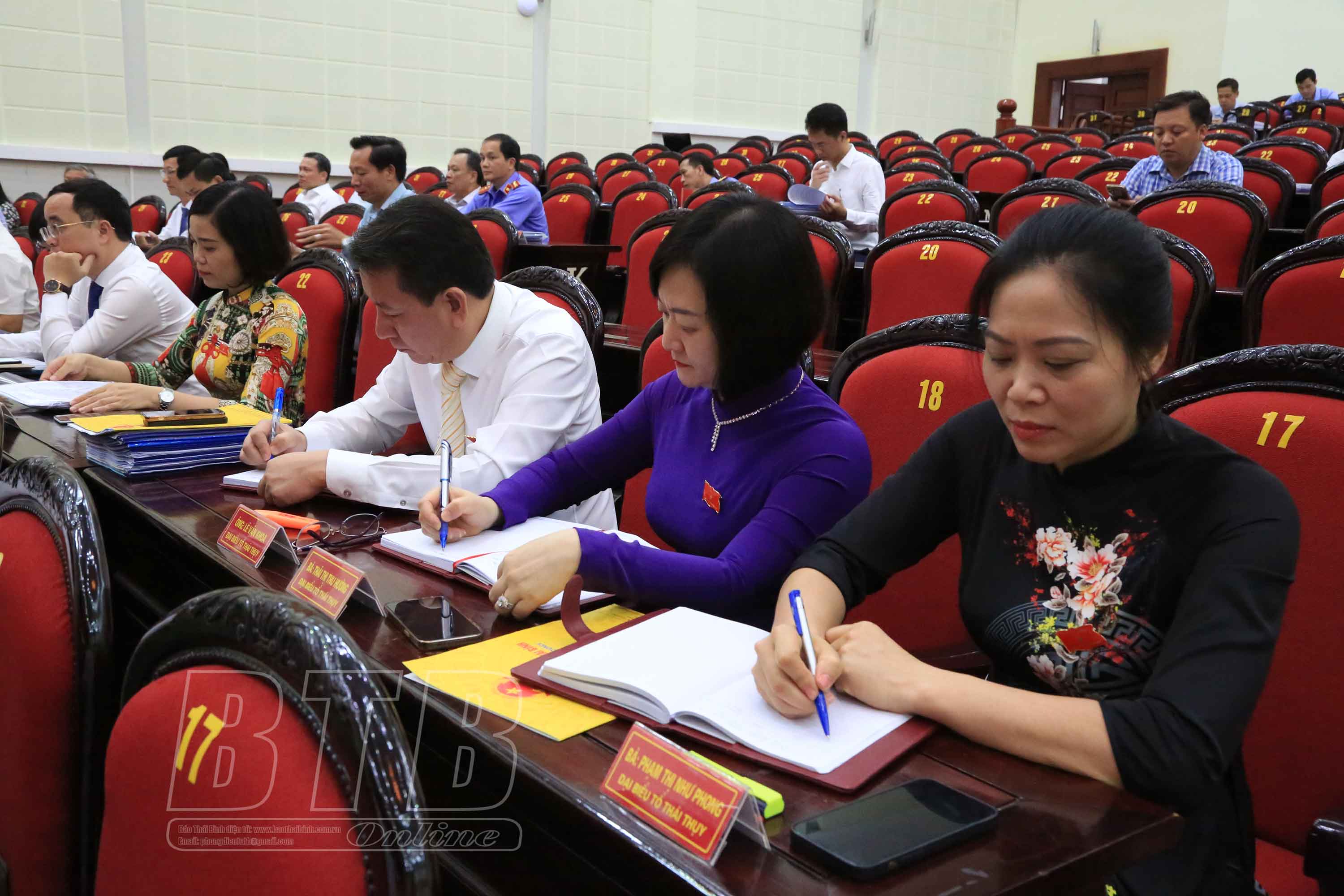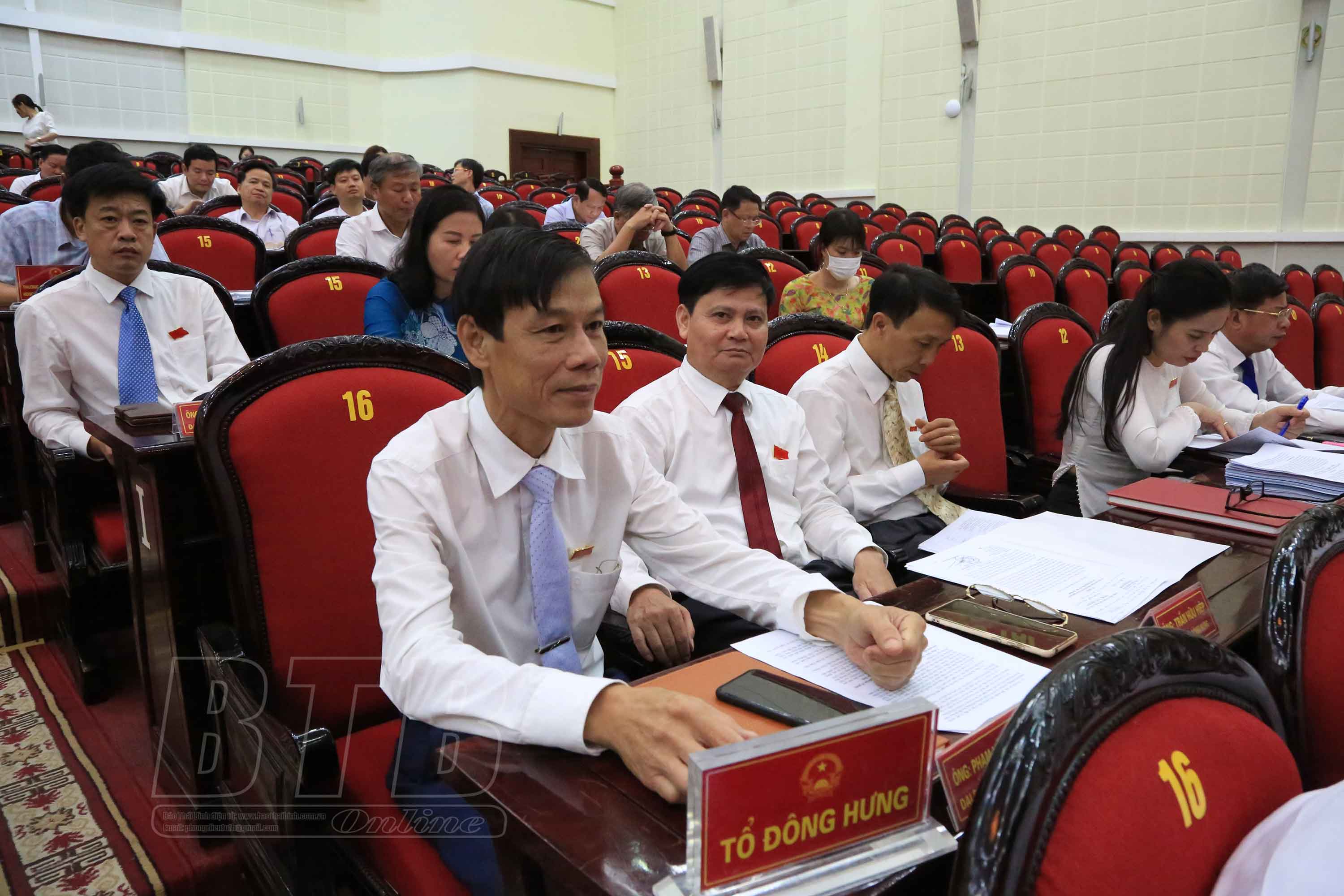 Tại kỳ họp, các đại biểu tiếp tục nghe các tờ trình của UBND tỉnh gồm: Tờ trình đề nghị ban hành Nghị quyết của HĐND tỉnh sửa đổi, bổ sung một số điều Nghị quyết số 25/NQ-HĐND ngày 11/10/2021 của HĐND tỉnh quy định cơ chế, chính sách hỗ trợ xây dựng hệ thống đèn điện “Thắp sáng đường quê” trong xây dựng nông thôn mới giai đoạn 2021-2025; thống nhất đề xuất thực hiện dcự án đầu tư xây dựng tuyến đường cao tốc Ninh Bình - Hải Phòng (CT.08) và giao UBND tỉnh Thái Bình làm cơ quan nhà nước có thẩm quyền thực hiện dự án; đặt tên đường, tên phố trên địa bàn thị trấn Diêm Điền, huyện Thái Thụy và thị trấn Tiền Hải, huyện Tiền Hải; ban hành Nghị quyết quy định mức chi kinh phí tập huấn, bồi dưỡng giáo viên và cán bộ quản lý cơ sở giáo dục để thực hiện chương trình mới, sách giáo khoa mới giáo dục phổ thông; ban hành Nghị quyết của HĐND tỉnh Quy định nguyên tắc, tiêu chí, định mức phân bổ vốn ngân sách nhà nước thực hiện Chương trình mục tiêu quốc gia giảm nghèo bền vững trên địa bàn tỉnh Thái Bình, giai đoạn 2022-2025; ban hành Nghị quyết bãi bỏ một số Nghị quyết của HĐND tỉnh Thái Bình; chuyển mục đích sử dụng đất trồng lúa để thực hiện các dự án trên địa bàn tỉnh Thái Bình; bổ sung danh mục dự án cần thu hồi đất để phát triển kinh tế - xã hội vì lợi ích quốc gia, công cộng trên địa bàn tỉnh Thái Bình năm 2022; thông qua đồ án Quy hoạch phân khu xây dựng tỷ lệ 1/2.000 Khu công nghiệp - đô thị - dịch vụ Tân Trường, huyện Thái Thụy, tỉnh Thái Bình.