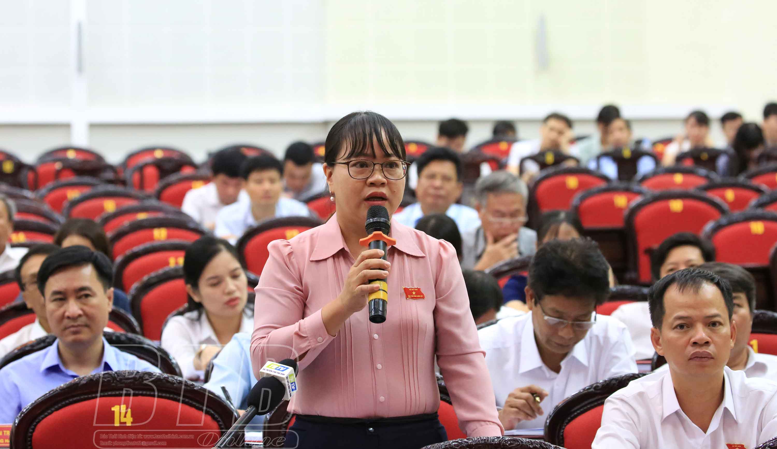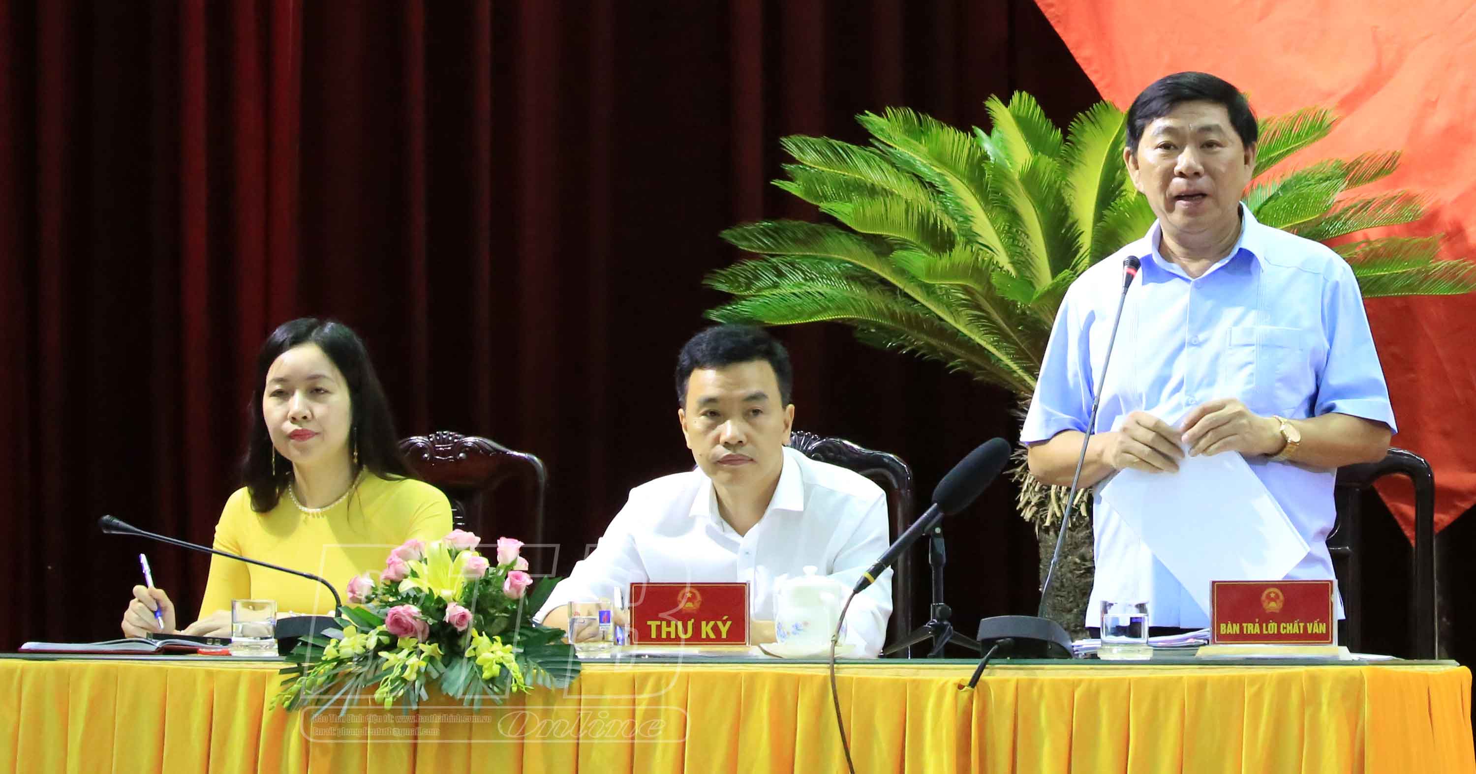Đại biểu Bùi Thị Hiển, tổ Đông Hưng, Tô Quý Bôn, tổ Tiền Hải chất vấn đồng chí Phạm Quang Hòa, Giám đốc Sở Y tế làm rõ vấn đề phản ánh của cử tri về hệ thống y tế cơ sở hiện nay đang còn nhiều hạn chế, một số địa phương cơ sở vật chất, trang thiết bị chưa đầy đủ, nhân lực còn thiếu so với quy định; giải pháp cần quan tâm chỉ đạo trong thời gian tới; về tình trạng không cung ứng kịp thời, đầy đủ thuốc, vật tư y tế phục vụ người bệnh, nhất là các thuốc thiết yếu trong danh mục thuốc thuộc phạm vi được hưởng của người tham gia bảo hiểm y tế tại một số cơ sở khám, chữa bệnh; giải pháp khắc phục tình trạng này.