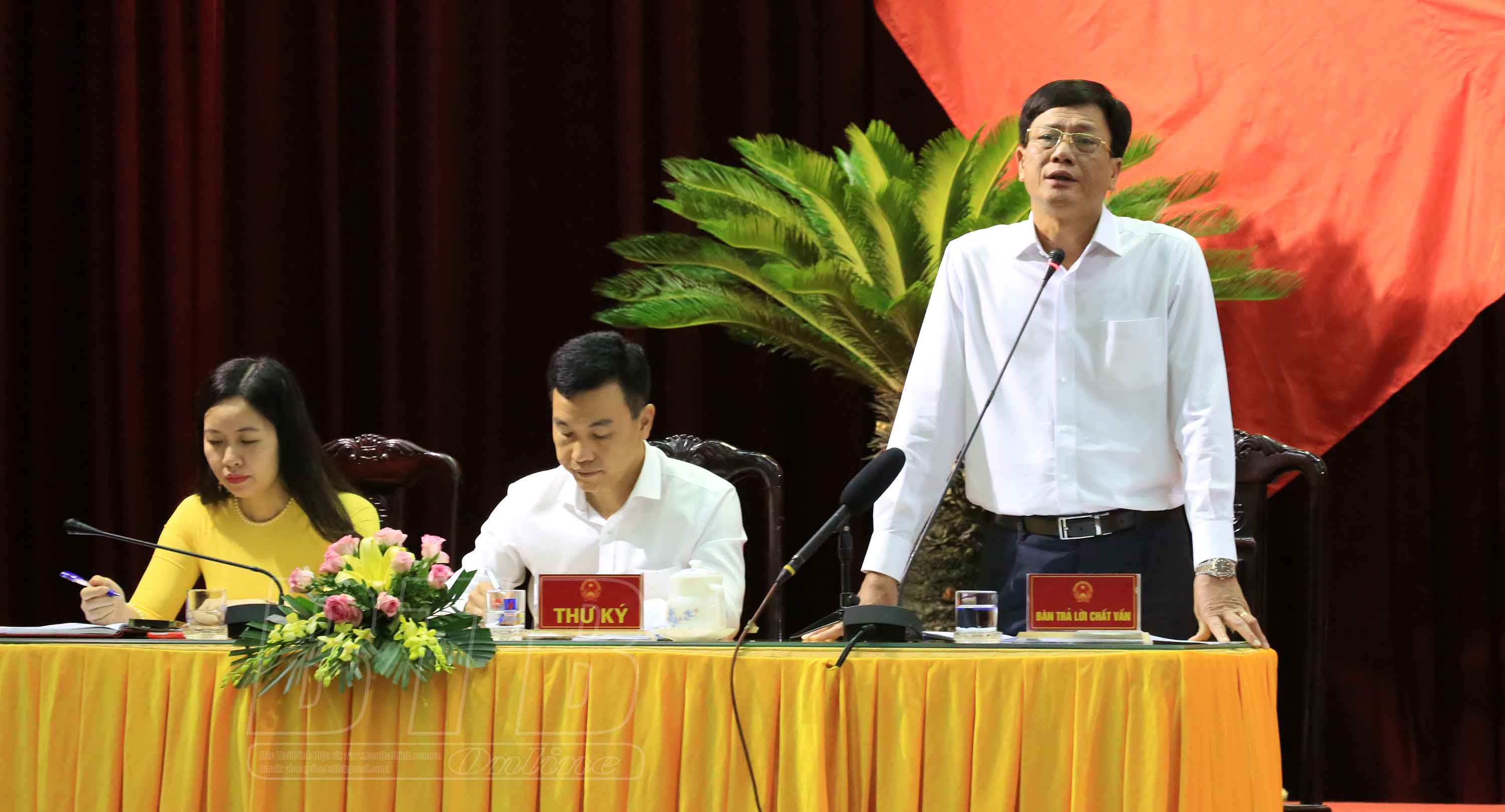 Đồng chí Vũ Kim Cứ, Ủy viên Ban Thường vụ Tỉnh ủy, Giám đốc Sở Kế hoạch và Đầu tư trả lời chất vấn.