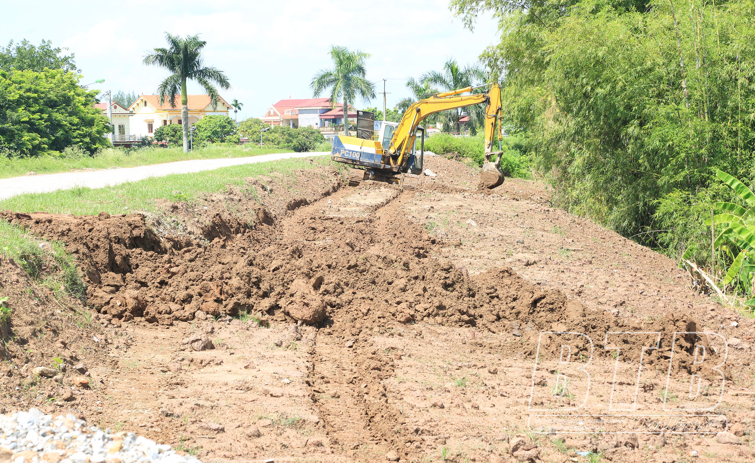 Dự án đê tả Trà Lý đoạn Tịnh Xuyên, xã Hồng Minh, huyện Hưng Hà đang được thi công.