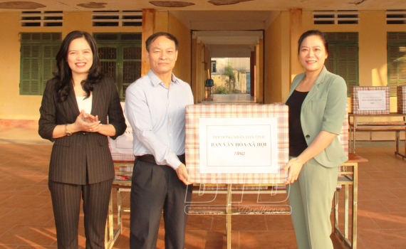 Lãnh đạo Ban Văn hóa - Xã hội, HĐND tỉnh trao quà cho cán bộ, giáo viên Trường THPT Thái Ninh.