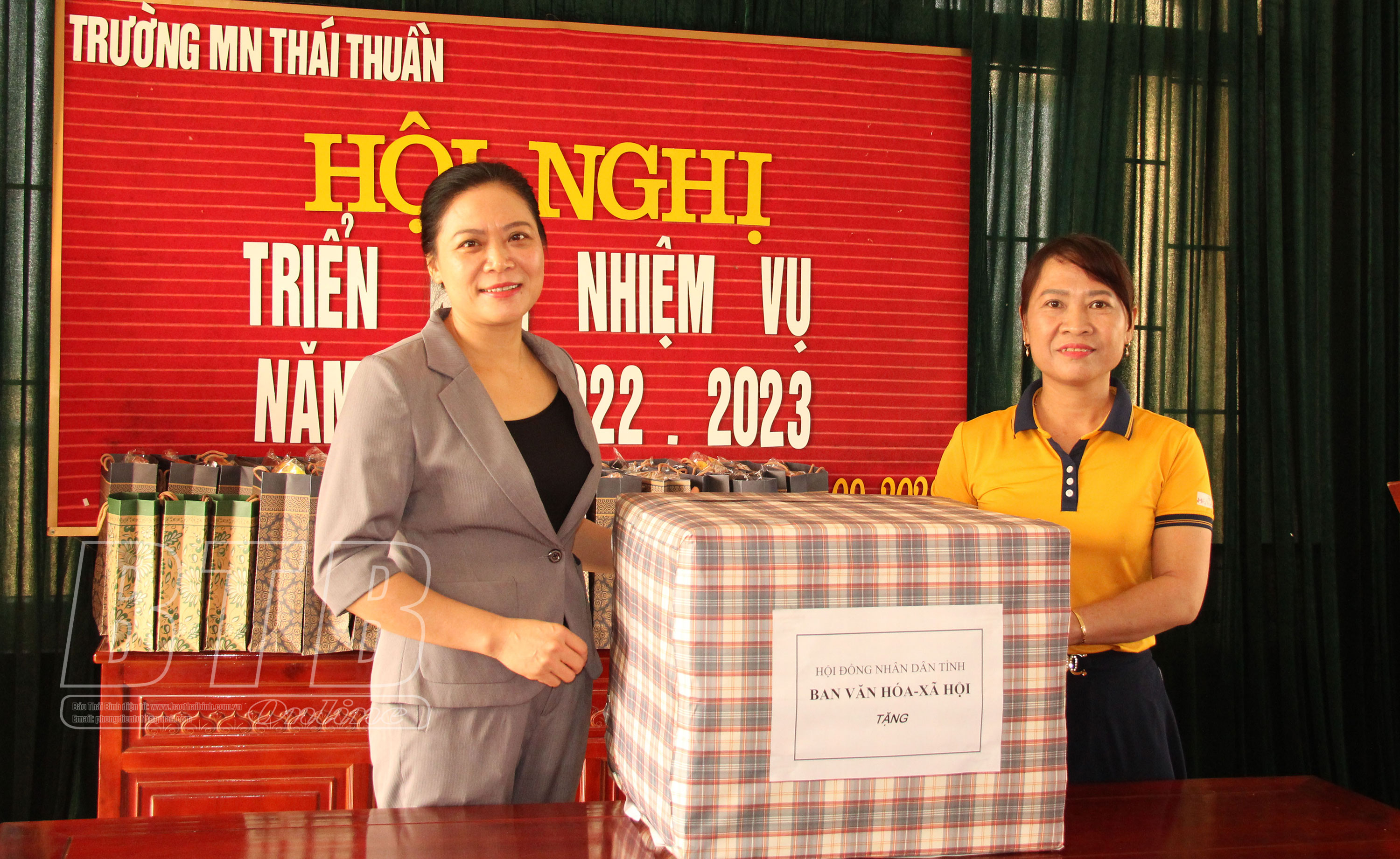 Ban Văn hóa - Xã hội, HĐND tỉnh trao quà cho cán bộ, giáo viên Trường Mầm non Thái Thuần, xã Thuần Thành (Thái Thụy).