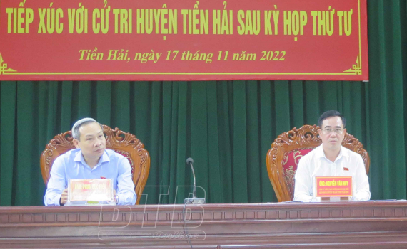 Các đại biểu Quốc hội tỉnh tiếp xúc với cử tri huyện Tiền Hải.