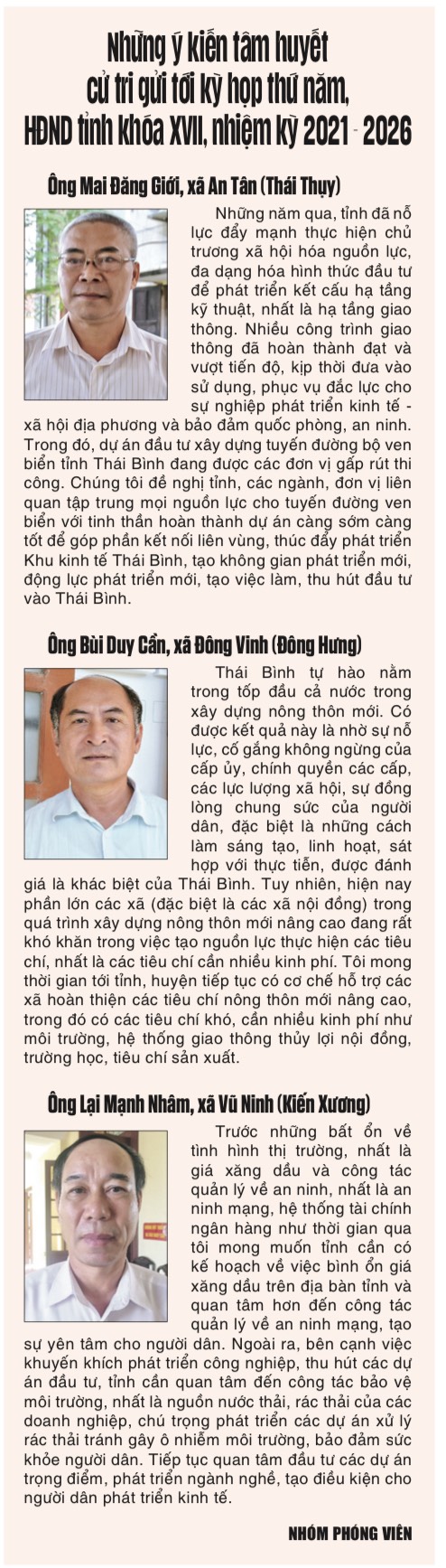 Theo trả lời của Sở Công Thương: Những năm qua, tỉnh Thái Bình đã ban hành nhiều văn bản chỉ đạo đẩy nhanh tiến độ xây dựng hạ tầng CCN và thu hút các nhà đầu tư thứ cấp vào CCN. Trong đó, Ban Thường vụ Tỉnh ủy ban hành Chỉ thị số 08 về tăng cường sự lãnh đạo, chỉ đạo thực hiện công tác giải phóng mặt bằng (GPMB) phục vụ triển khai các dự án đầu tư trên địa bàn tỉnh; UBND tỉnh ban hành kế hoạch phát động phong trào thi đua GPMB nên đã tháo gỡ được những “nút thắt”, “điểm nghẽn”, đẩy nhanh tiến độ thu hút đầu tư vào tỉnh. UBND các huyện, thành phố tập trung chỉ đạo đẩy nhanh công tác thu hồi đất, bồi thường, hỗ trợ tái định cư, sớm giao đất cho nhà đầu tư hạ tầng triển khai thực hiện dự án; đôn đốc, hướng dẫn, hỗ trợ nhà đầu tư hạ tầng kỹ thuật CCN đẩy nhanh tiến độ thực hiện các thủ tục đầu tư, đất đai, môi trường, xây dựng... để đẩy nhanh tiến độ xây dựng hạ tầng CCN, nhất là xây dựng hệ thống xử lý nước thải tập trung. Phối hợp với chủ đầu tư hạ tầng kỹ thuật CCN kêu gọi, thu hút các nhà đầu tư có năng lực, kinh nghiệm đầu tư vào các CCN trên địa bàn, trong đó ưu tiên thu hút các dự án có công nghệ cao, công nghệ sạch, tiêu tốn ít năng lượng và các ngành công nghiệp có giá trị gia tăng cao, phát triển bền vững.