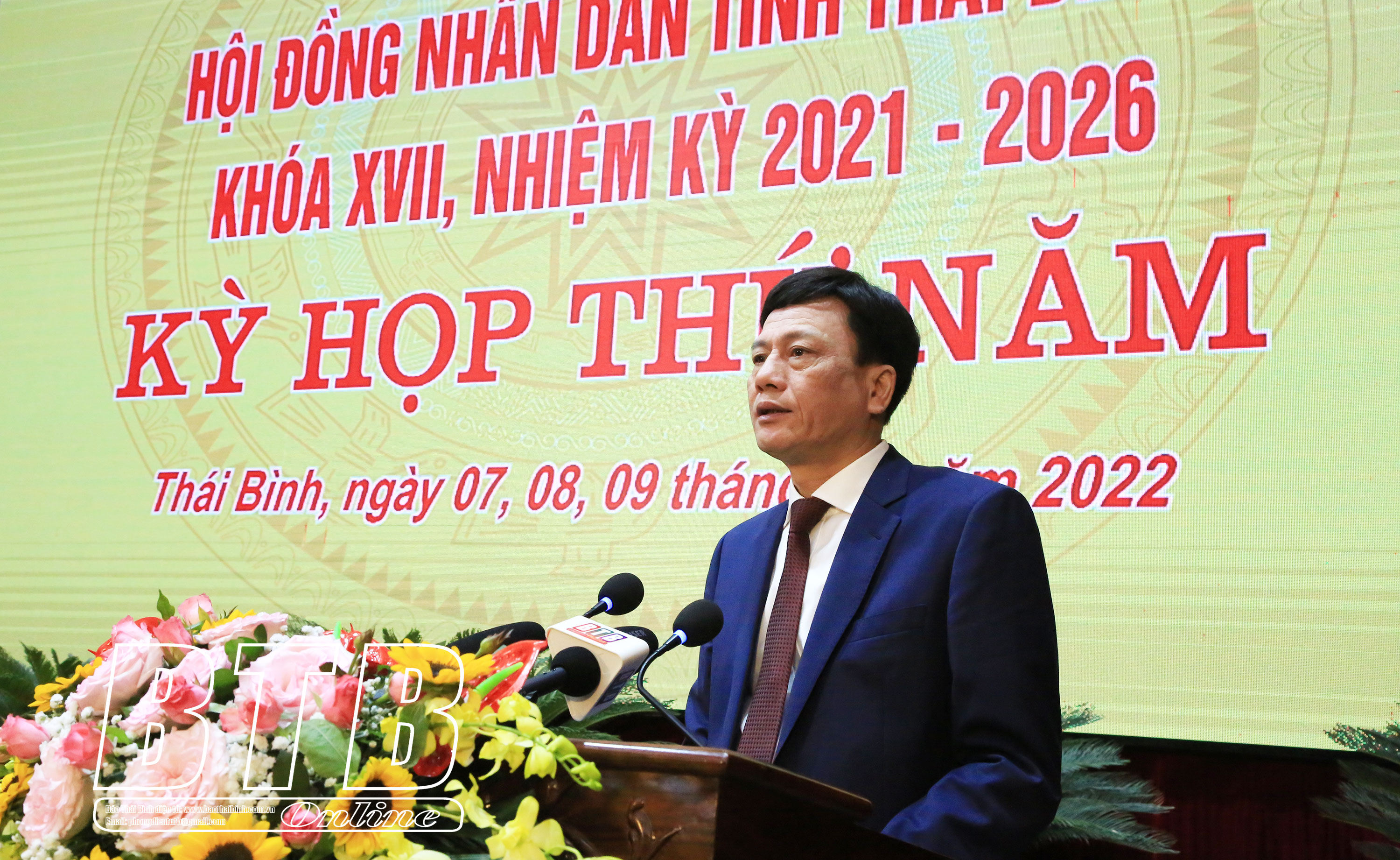 Báo cáo tình hình phát triển kinh tế - xã hội năm 2022, mục tiêu, nhiệm vụ, giải pháp chủ yếu năm 2023 của UBND tỉnh được trình bày tại kỳ họp khẳng định: Năm 2022, mặc dù còn nhiều khó khăn, thách thức song với sự quyết tâm cao của cả hệ thống chính trị, sự đồng thuận, ủng hộ của nhân dân và nỗ lực khắc phục khó khăn của cộng đồng doanh nghiệp, kinh tế của tỉnh đã có sự phục hồi, tăng trưởng khá, đạt kết quả tích cực. Trong 23 chỉ tiêu phát triển kinh tế - xã hội, có 11 chỉ tiêu vượt kế hoạch, 10 chỉ tiêu đạt kế hoạch. Tốc độ tăng trưởng kinh tế đạt 9,52%, cao hơn cùng kỳ năm 2021 (7,23%), vượt kế hoạch đề ra (9%). Tổng giá trị sản xuất ước đạt trên 190.000 tỷ đồng, tăng 11,5% so với năm 2021; trong đó nông, lâm nghiệp và thủy sản tăng 2,5%, công nghiệp và xây dựng tăng 14,5%, dịch vụ tăng 8,9%. Tiếp tục hoàn thiện thủ tục công nhận xã nông thôn mới nâng cao; dự kiến công nhận thêm 10 xã đạt chuẩn nông thôn mới nâng cao; lũy kế, toàn tỉnh có 25 xã được công nhận đạt chuẩn nông thôn mới nâng cao. Tổng thu ngân sách nhà nước năm 2022 ước thực hiện gần 28.000 tỷ đồng, đạt 155% dự toán, tăng 26,7% so với 2021; tỷ lệ giải ngân vốn đầu tư công đạt cao. Một số công trình trọng điểm, kết nối được tập trung nguồn lực và chỉ đạo quyết liệt để sớm hoàn thành. Công tác giải phóng mặt bằng được chỉ đạo quyết liệt, có nhiều sáng tạo; một số điểm nghẽn, nút thắt tồn tại từ lâu đến nay đã được giải quyết dứt điểm; đã chỉ đạo giải quyết xong một số vấn đề khó khăn, phức tạp. Hoạt động xúc tiến đầu tư tiếp tục được đổi mới; việc tháo gỡ vướng mắc trong thu hút đầu tư, đẩy mạnh cải thiện môi trường đầu tư kinh doanh được chỉ đạo quyết liệt; là năm đầu tiên vượt mốc 1.000 doanh nghiệp đăng ký thành lập mới/năm. Lĩnh vực văn hóa - xã hội có nhiều khởi sắc; trong năm 2022 đã tổ chức nhiều sự kiện quan trọng của tỉnh, là năm có nhiều “điểm sáng” về văn hóa, thể thao, góp phần tạo không khí vui mừng, phấn khởi trong nhân dân và nâng cao hình ảnh, vị thế của tỉnh. Kỷ cương, kỷ luật hành chính trong các cơ quan nhà nước được tăng cường; việc cụ thể hóa, thể chế các chủ trương, nghị quyết của Tỉnh ủy, HĐND tỉnh và chỉ đạo của cấp trên được triển khai đầy đủ, kịp thời. Công tác tiếp dân và giải quyết khiếu nại, tố cáo được duy trì nền nếp. Công tác cải cách hành chính được quan tâm chỉ đạo thực hiện. Các lĩnh vực văn hóa, xã hội được chỉ đạo toàn diện, phù hợp với điều kiện thực tế, đáp ứng được yêu cầu, nhiệm vụ phát triển kinh tế - xã hội và phục vụ nhân dân. An ninh chính trị, trật tự an toàn xã hội trên địa bàn tỉnh được giữ vững.