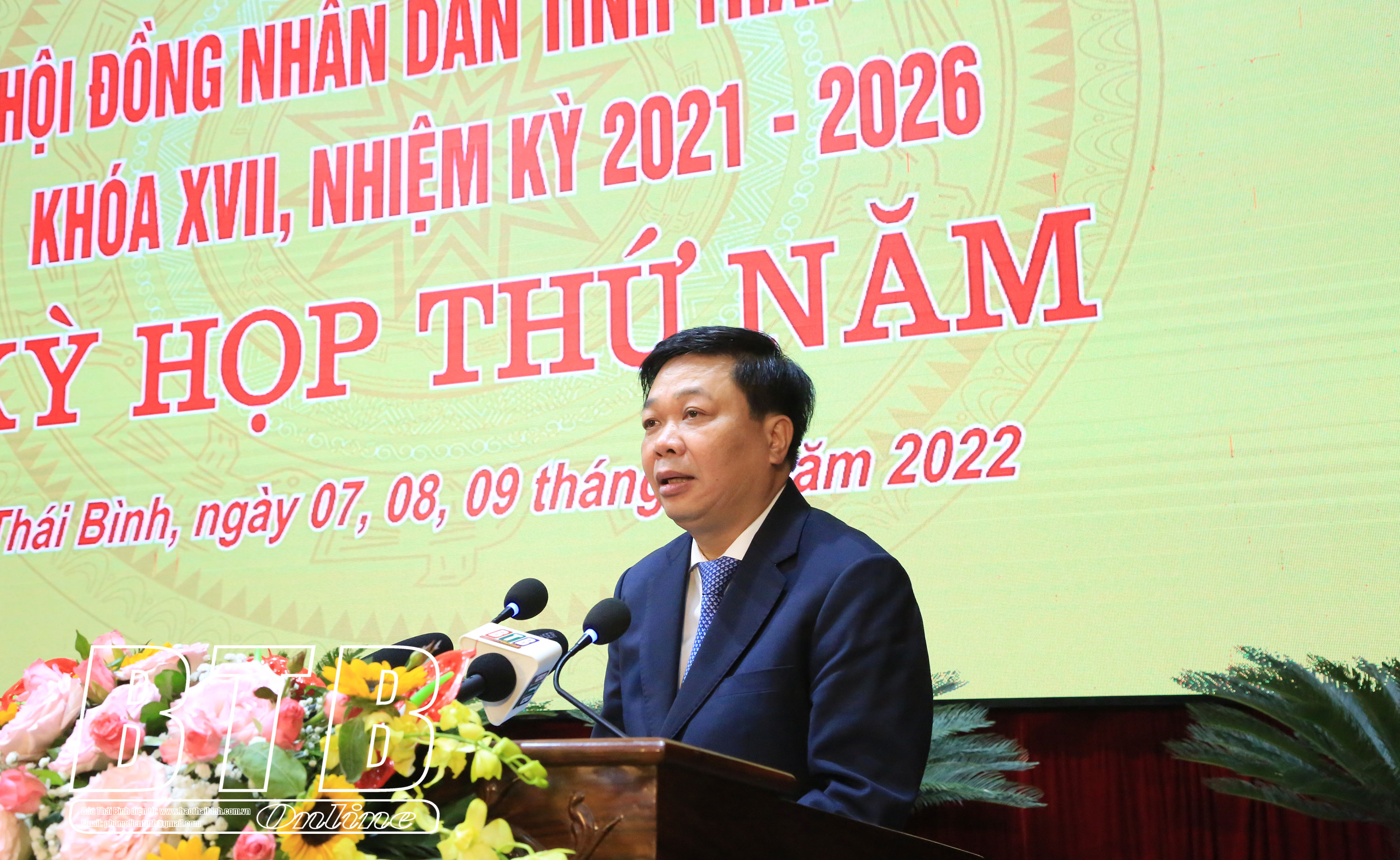 Cũng tại kỳ họp, HĐND tỉnh đã nghe và thảo luận các báo cáo: Kết quả giải quyết ý kiến, kiến nghị của cử tri trước và sau kỳ họp thứ tư, HĐND tỉnh khóa XVII; Kết quả thực hiện kế hoạch đầu tư công, chương trình mục tiêu quốc gia năm 2022, kế hoạch năm 2023. UBND tỉnh báo cáo với HĐND tỉnh các tờ trình về việc: Đề nghị ban hành quy định cơ chế huy động nguồn lực, lồng ghép nguồn vốn giữa các chương trình mục tiêu quốc gia giai đoạn 2021-2025 và giữa các chương trình mục tiêu quốc gia giai đoạn 2021-2025 với các chương trình, dự án khác trên địa bàn tỉnh Thái Bình; phê duyệt điều chỉnh chủ trương đầu tư dự án đầu tư xây dựng đường vào nhà máy cơ khí thép Hoàng Đào của Công ty TNHH Thép Hoàng Đào và đường nội bộ khu đất thu hồi của Công ty TNHH Phát triển Neo - Neon Việt Nam trong khu công nghiệp Gia Lễ, huyện Đông Hưng, tỉnh Thái Bình; phê duyệt điều chỉnh chủ trương đầu tư dự án đường vào Khu lưu niệm Nhà bác học Lê Quý Đôn (từ ĐT.454; ĐT.453 vào Khu lưu niệm); phê duyệt chủ trương đầu tư dự án cải tạo đường Lê Quý Đôn, đoạn từ đường Trần Thái Tông đến đường Trần Thủ Độ, thành phố Thái Bình; phê duyệt chủ trương đầu tư dự án xây dựng nhà học 4 tầng, 20 phòng học Trường THPT Nam Tiền Hải; phê duyệt chủ trương đầu tư dự án cải tạo, sửa chữa cơ sở vật chất phục vụ di chuyển trụ sở một số cơ quan đơn vị khu vực ven sông Trà Lý thuộc địa bàn thành phố Thái Bình và cải tạo, sửa chữa Trung tâm Thanh thiếu niên tỉnh; đề nghị bãi bỏ Quyết định số 2718/QĐ-UBND ngày 18/10/2017 của UBND về việc phê duyệt chủ trương đầu tư dự án đầu tư xây dựng khu cây xanh chuyên dụng, bãi đỗ xe tĩnh của Công ty Cổ phần Cấp nước Hoàng Diệu.