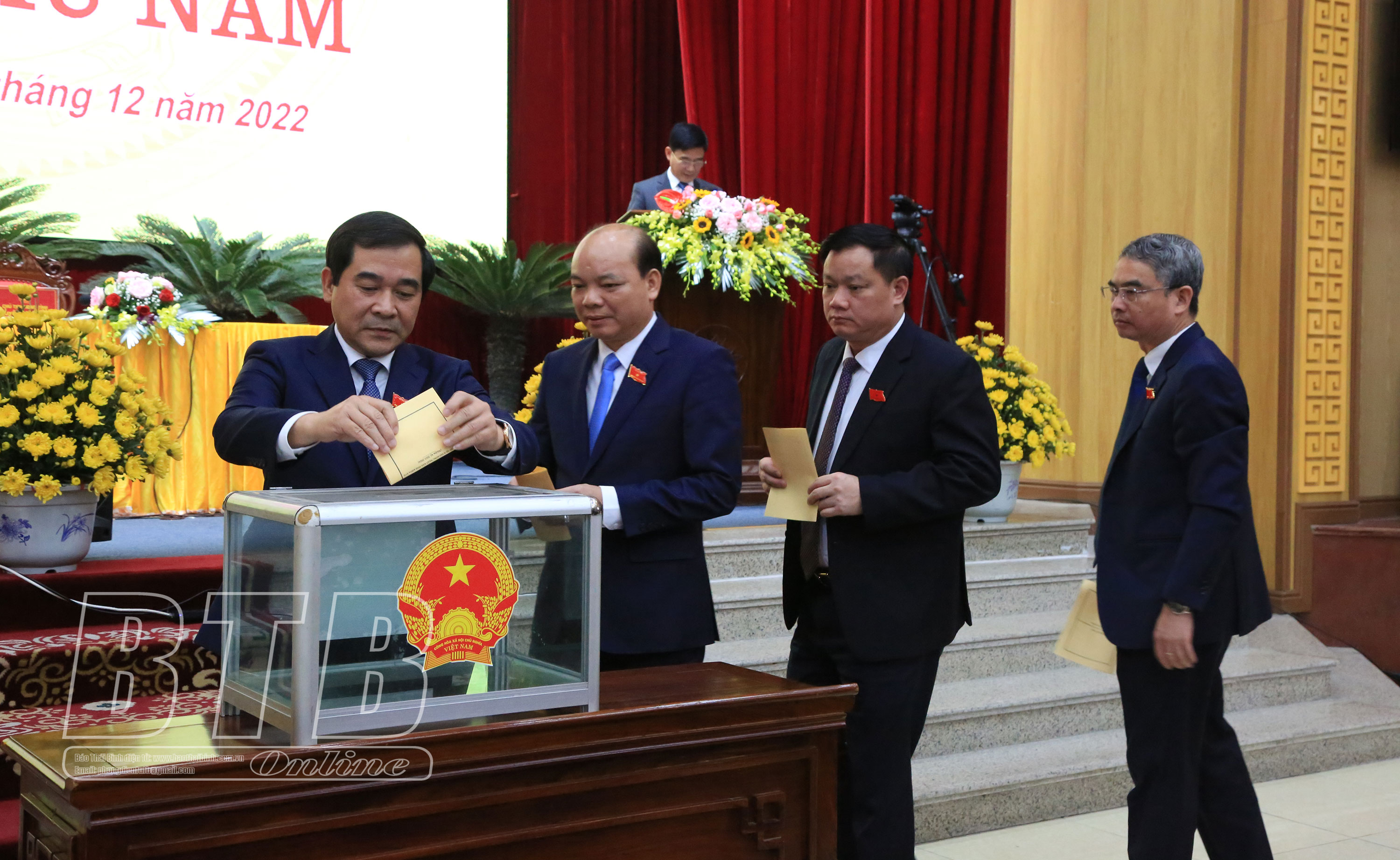 Thay mặt Thường trực HĐND tỉnh, đồng chí Nguyễn Tiến Thành, Phó Bí thư thường trực Tỉnh ủy, Chủ tịch HĐND tỉnh báo cáo HĐND tỉnh Tờ trình số 05/TTr-HĐND của Thường trực HĐND tỉnh đề nghị HĐND tỉnh bầu Phó Chủ tịch HĐND tỉnh khóa XVII, nhiệm kỳ 2021 - 2026; Tờ trình số 06/TTr-HĐND của Thường trực HĐND tỉnh giới thiệu nhân sự bầu Phó Chủ tịch HĐND tỉnh khóa XVII, nhiệm kỳ 2021 - 2026 đối với đồng chí Vũ Ngọc Trì, Tỉnh ủy viên, Bí thư Huyện ủy, Chủ tịch HĐND huyện Kiến Xương.