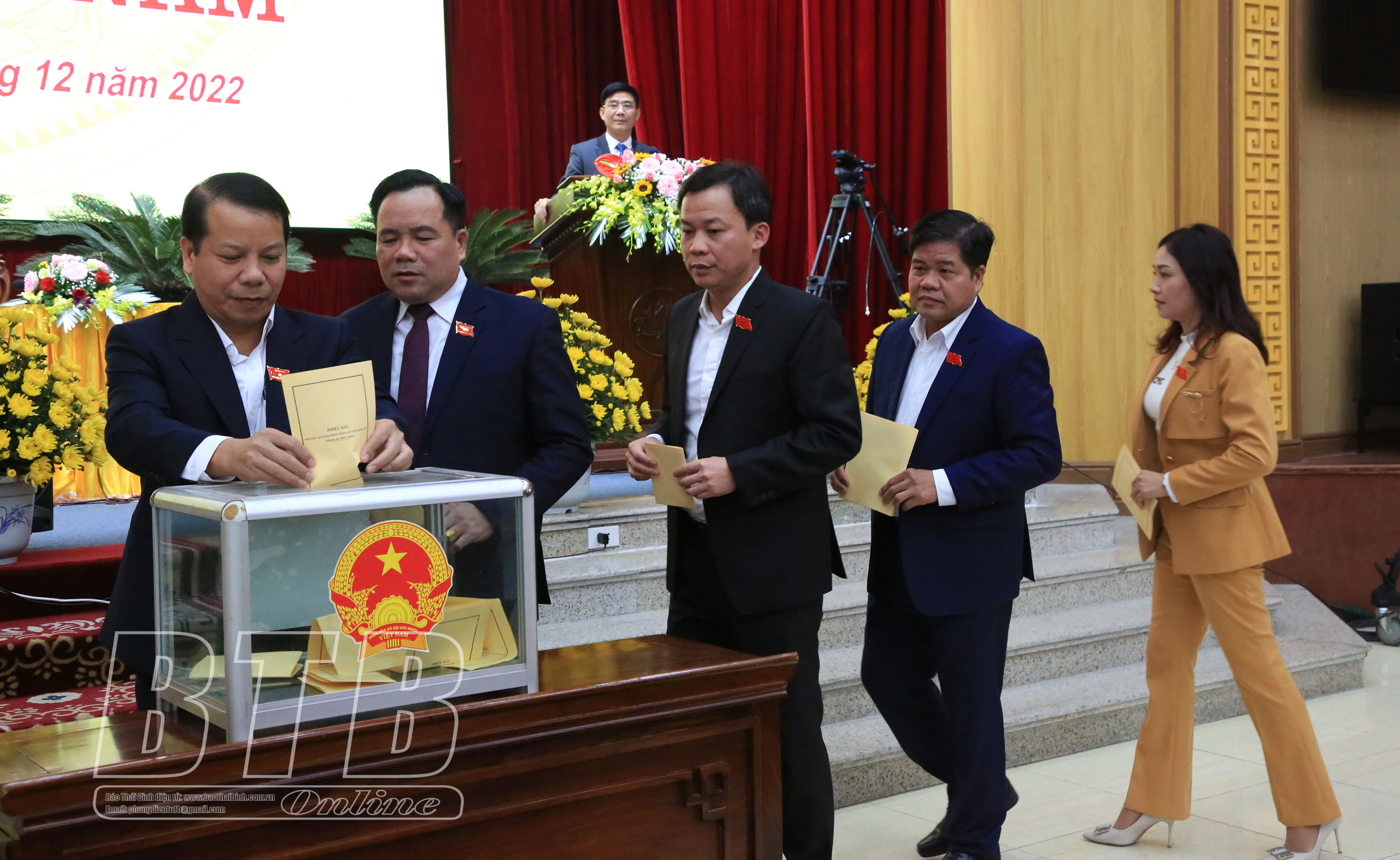 Các đại biểu bỏ phiếu bầu Phó chủ tịch HĐND tỉnh và bầu Ủy viên UBND tỉnh.