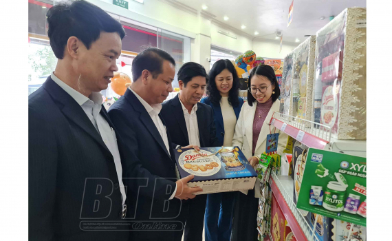 Đoàn giám sát của HĐND tỉnh kiểm tra hoạt động cung cầu tại siêu thị Minh Đăng, huyện Quỳnh Phụ.