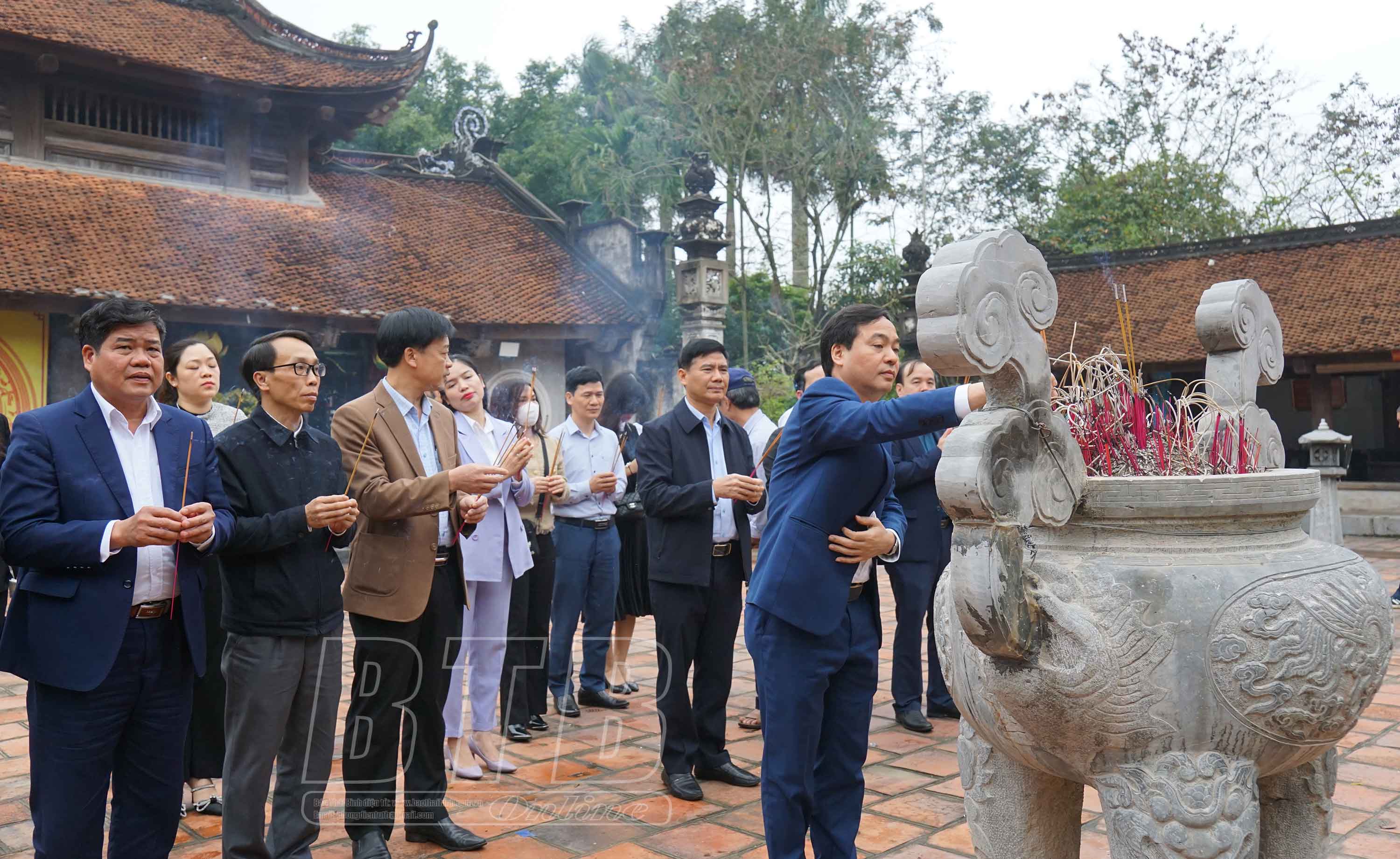 Đoàn giám sát dâng hương tại di tích đền Trần, xã Tiến Đức (Hưng Hà).