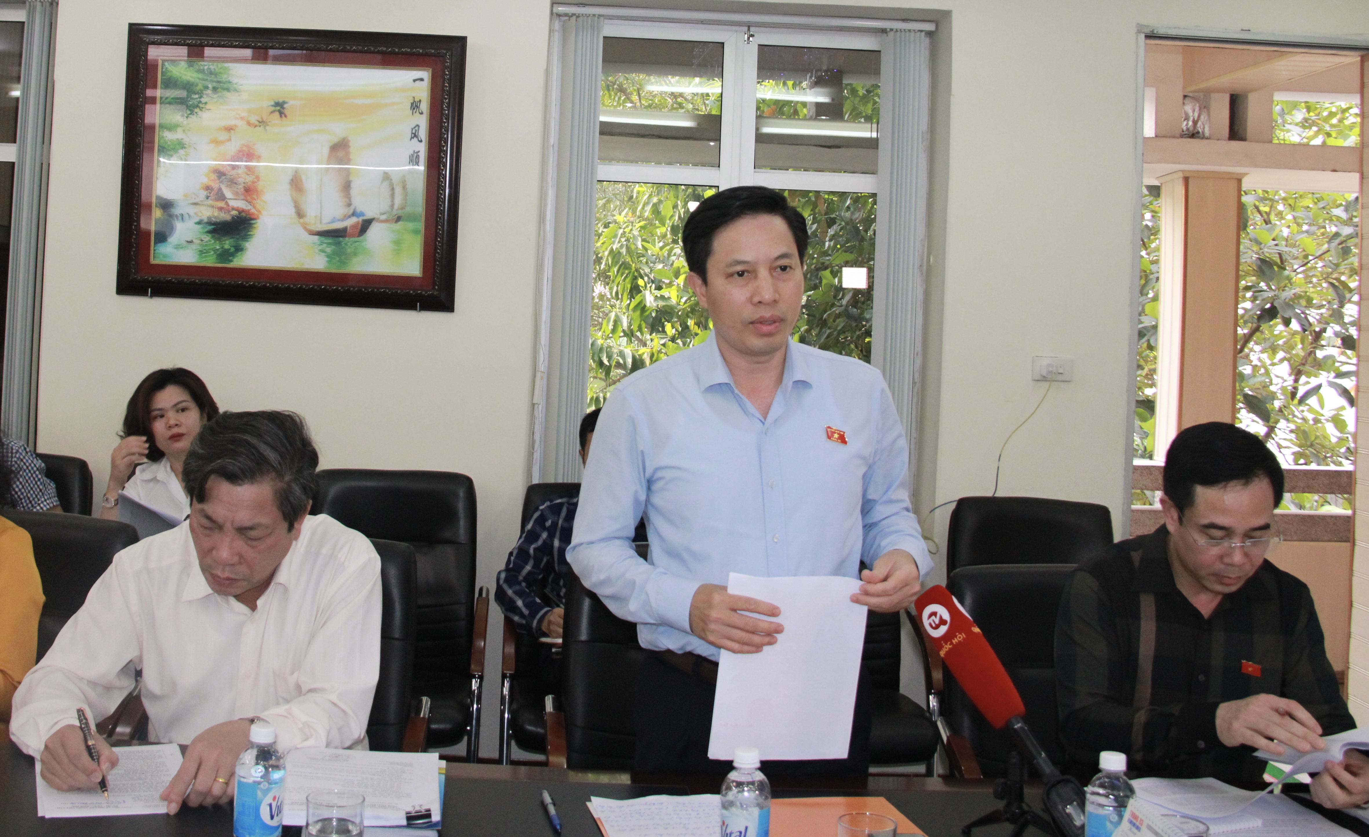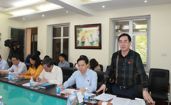Đồng chí Nguyễn Văn Huy, Tỉnh ủy viên, Phó Trưởng đoàn đại biểu Quốc hội chuyên trách tỉnh phát biểu tại buổi khảo sát.
