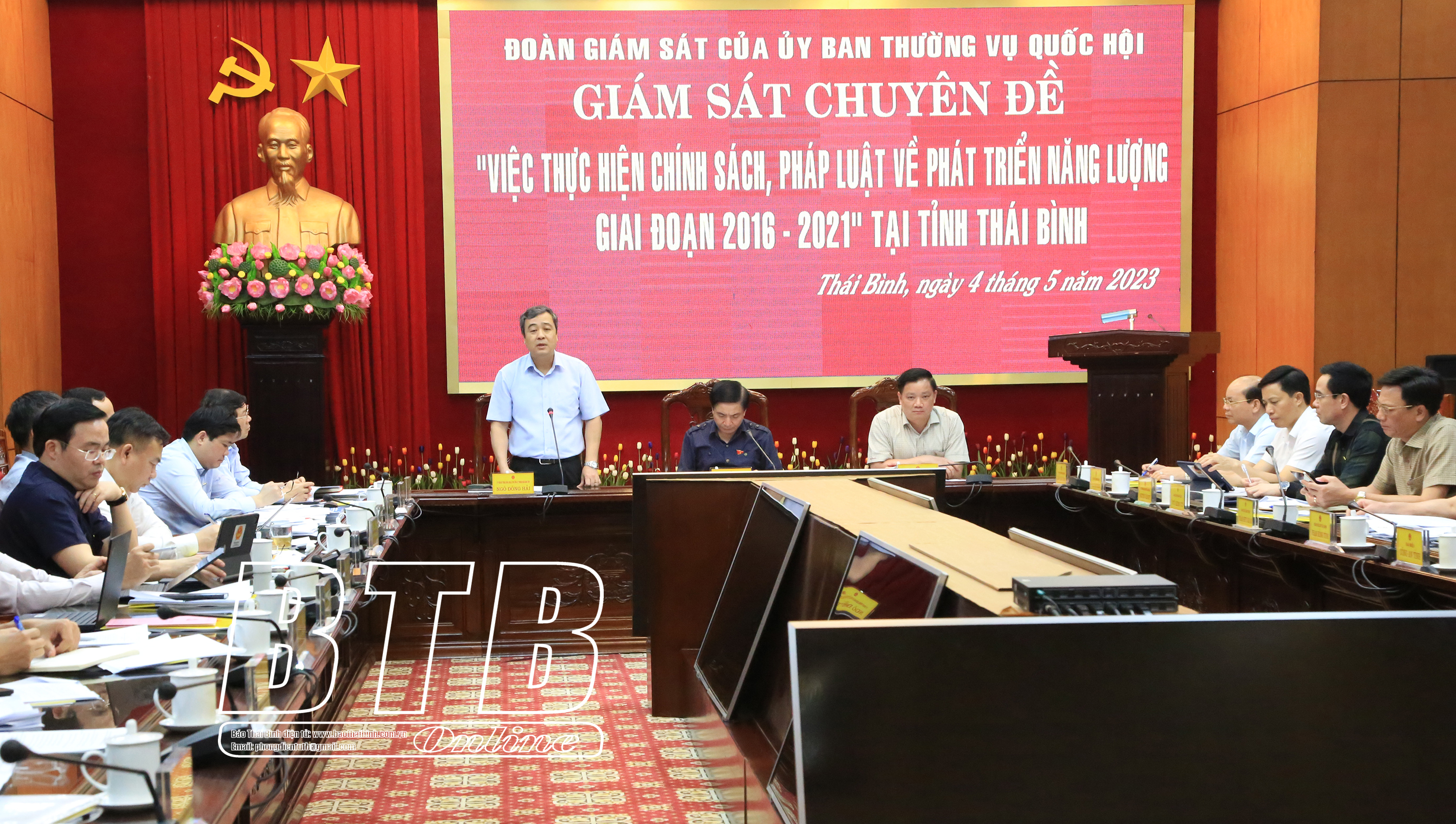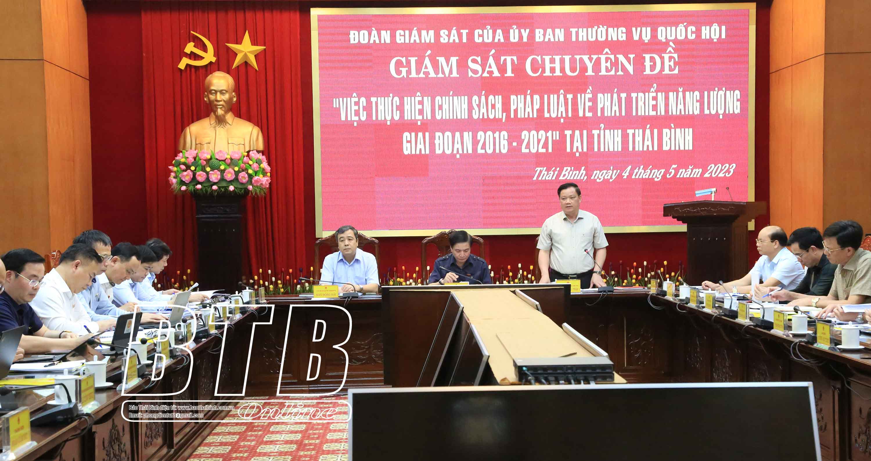 Phát biểu kết luận, đồng chí Tổng thư ký Quốc hội, Chủ nhiệm Văn phòng Quốc hội, Phó Trưởng đoàn giám sát đánh giá cao kết quả cũng như các giải pháp, chiến lược phát triển năng lượng của tỉnh Thái Bình. Đồng chí đề nghị lãnh đạo tỉnh, ngành chuyên môn tiếp thu các ý kiến, bổ sung sớm hoàn thiện báo cáo. Trong đó, đánh giá rõ những mặt đạt được cũng như tồn tại, hạn chế trên 2 mặt chính là xây dựng hoàn thiện thể chế và tổ chức thực hiện. Bổ sung các nội dung bảo đảm tính thích hợp, đầy đủ, có trọng tâm, trọng điểm, tránh trùng lặp. Có giải pháp khắc phục những hạn chế, tồn tại đã chỉ ra; phối hợp với các cơ quan trung ương đánh giá tính khả thi để khai thác hiệu quả các tiềm năng năng lượng của tỉnh. Làm rõ các số liệu về cung cầu năng lượng hiện nay, nhu cầu năng lượng trong tương lai; làm tốt công tác quy hoạch các dự án năng lượng; quan tâm phát triển nguồn nhân lực cho phát triển năng lượng của tỉnh.